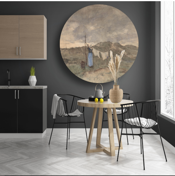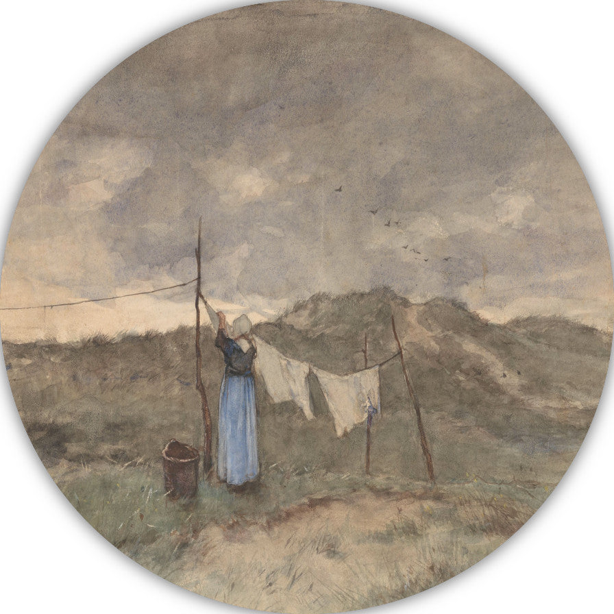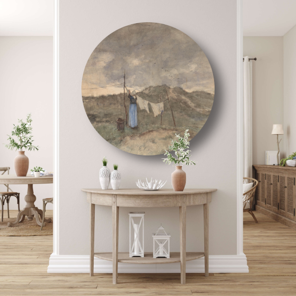 Vrouw bij een waslijn in de duinen - Anton Mauve forex muurcirkel