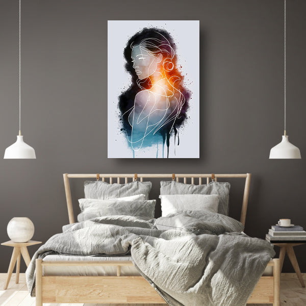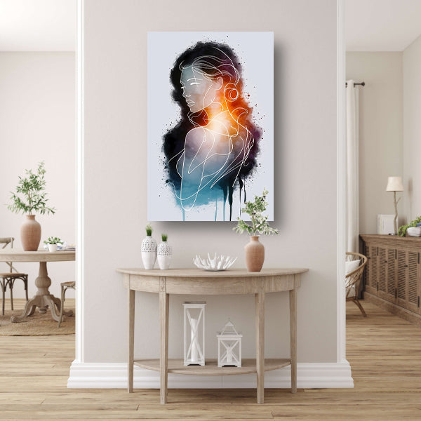 Vrouw in Abstracte Kleuren en Lijnen acrylglas