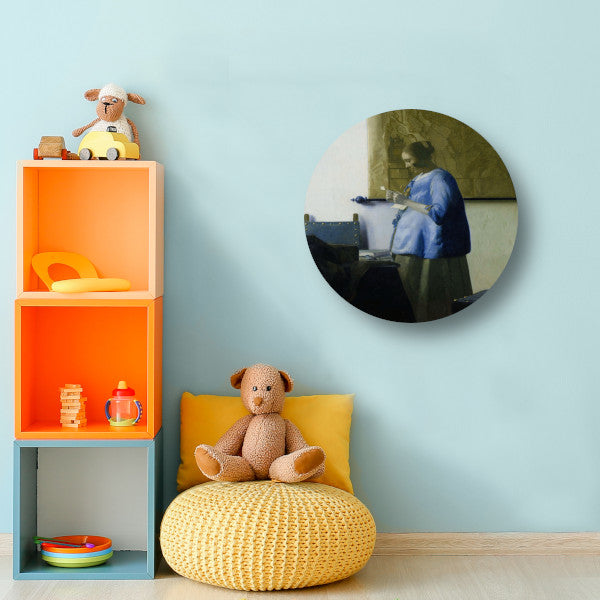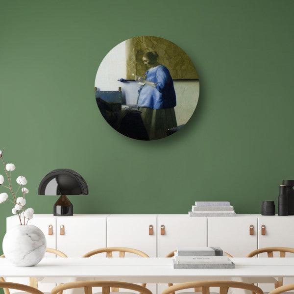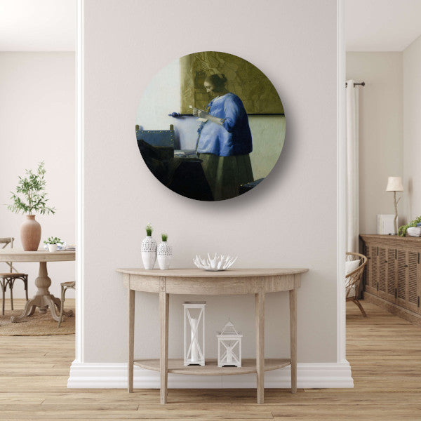Vrouw in het blauw die een brief leest - Johannes Vermeer aluminium muurcirkel