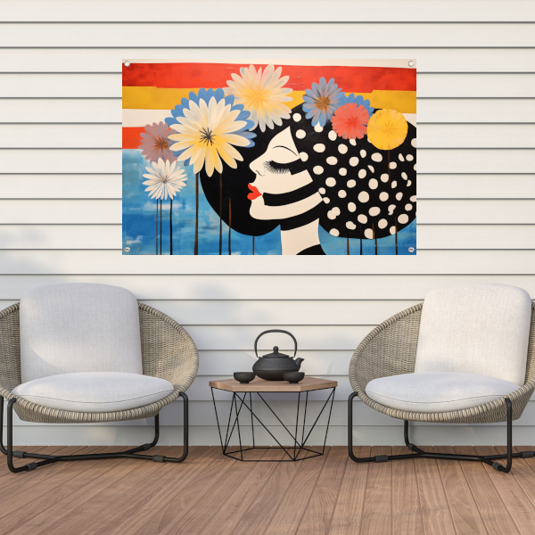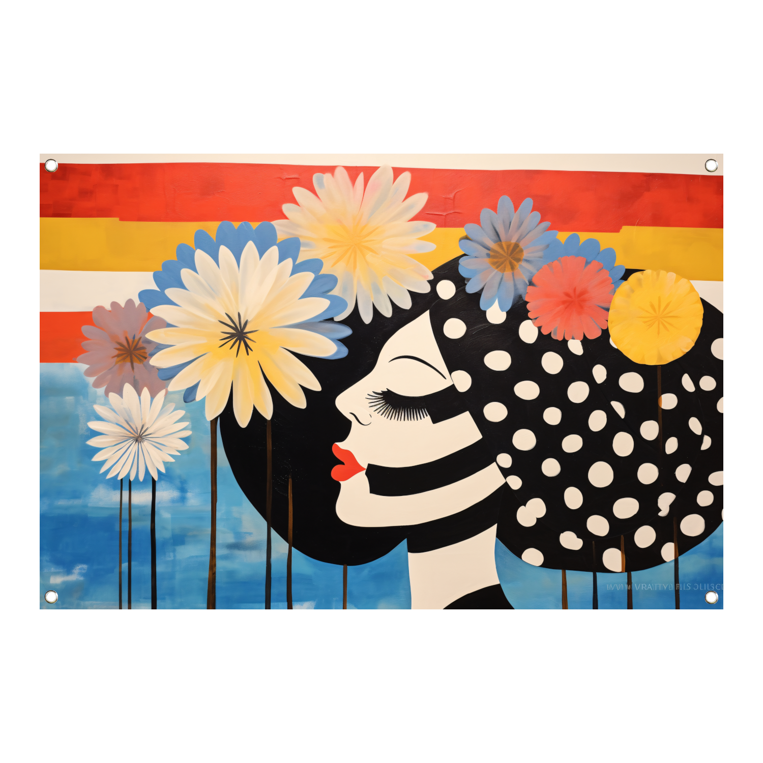 Vrouw Met Stippenjurk en Bloemen tuinposter