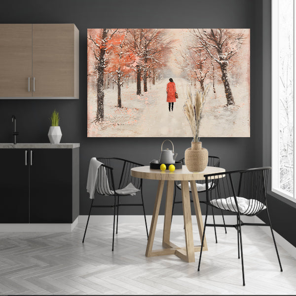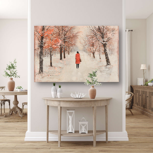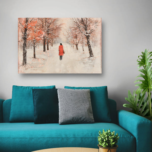 Vrouw wandelt in herfstlandschap met bomen acrylglas