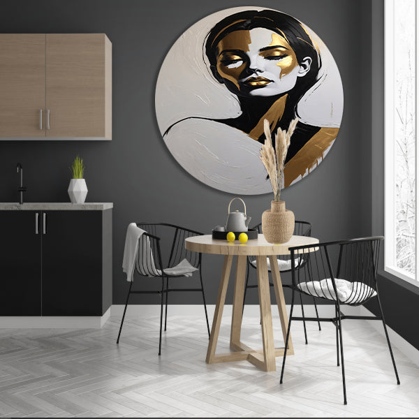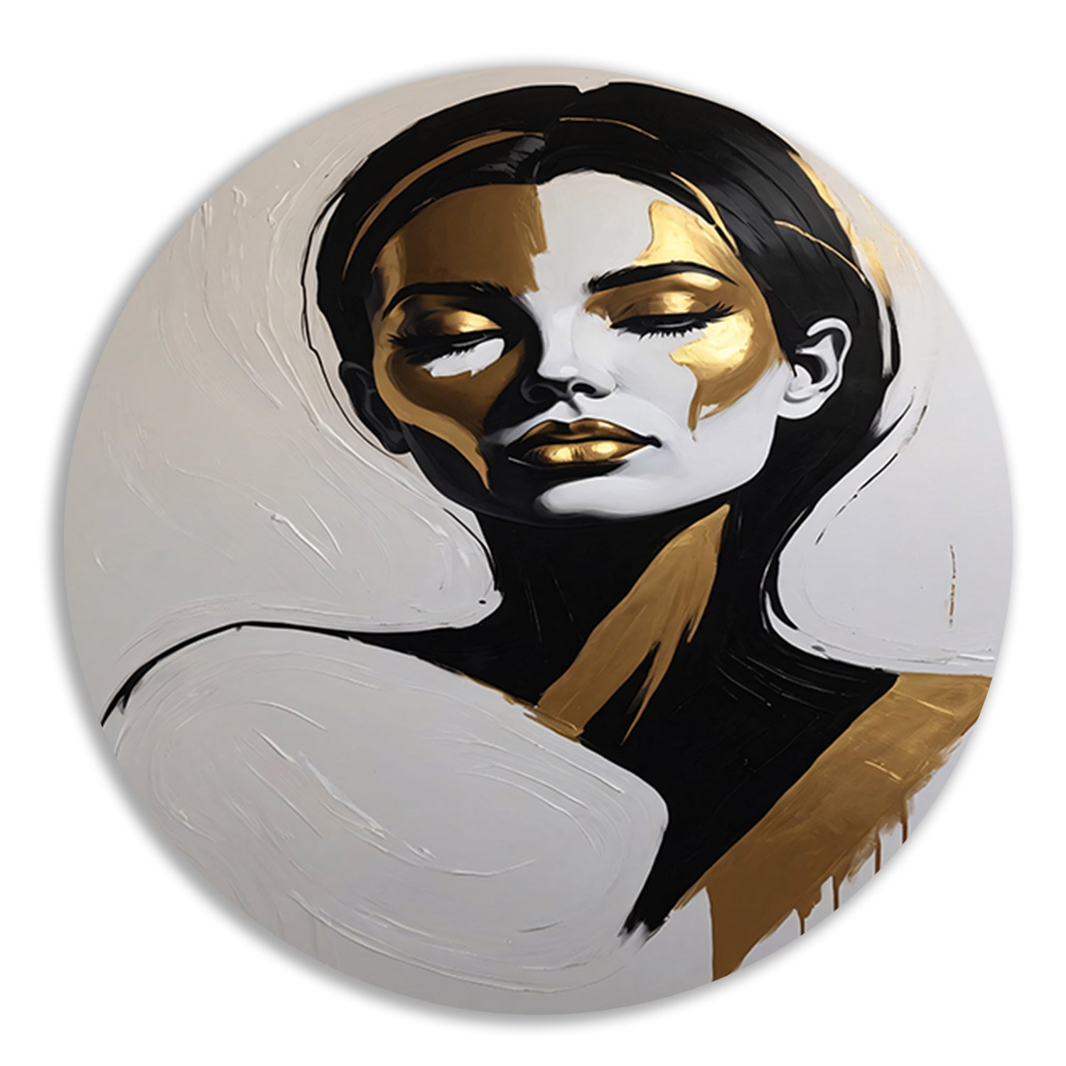 Vrouwelijk Portret in Zwart, Wit en Goud aluminium muurcirkel