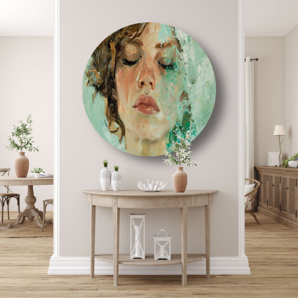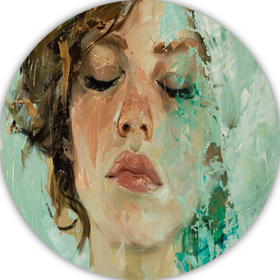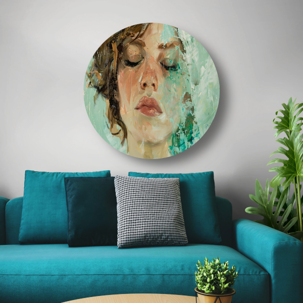Vrouwelijk Portret met Gesloten Ogen en Kleurenspel aluminium muurcirkel
