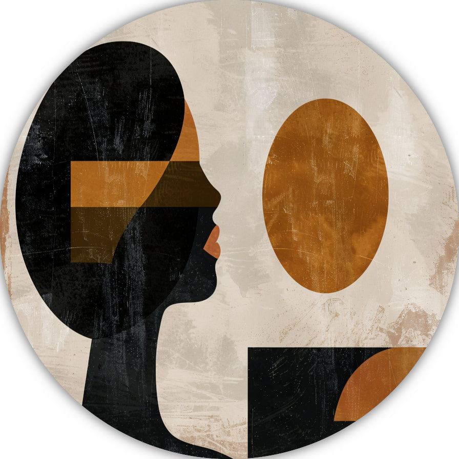 Vrouwelijk silhouet en abstracte cirkels in monochrome kleuren forex muurcirkel
