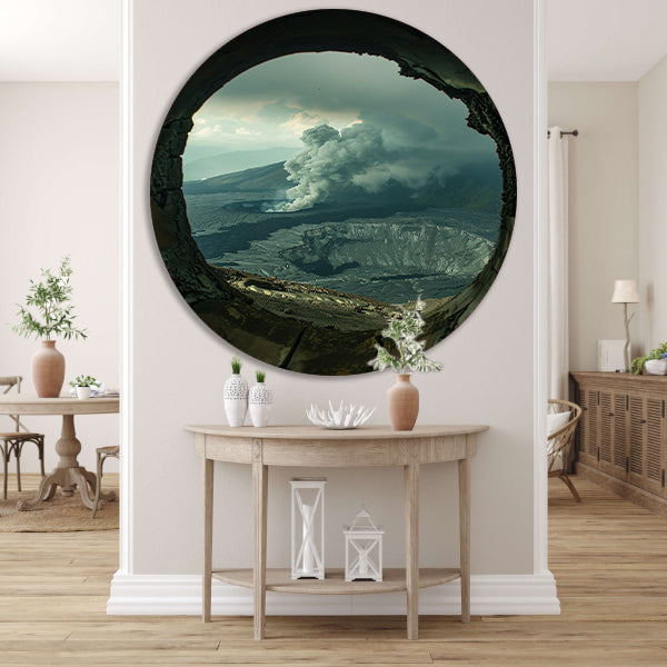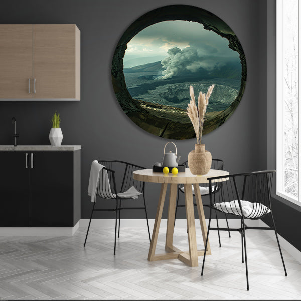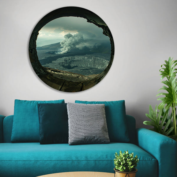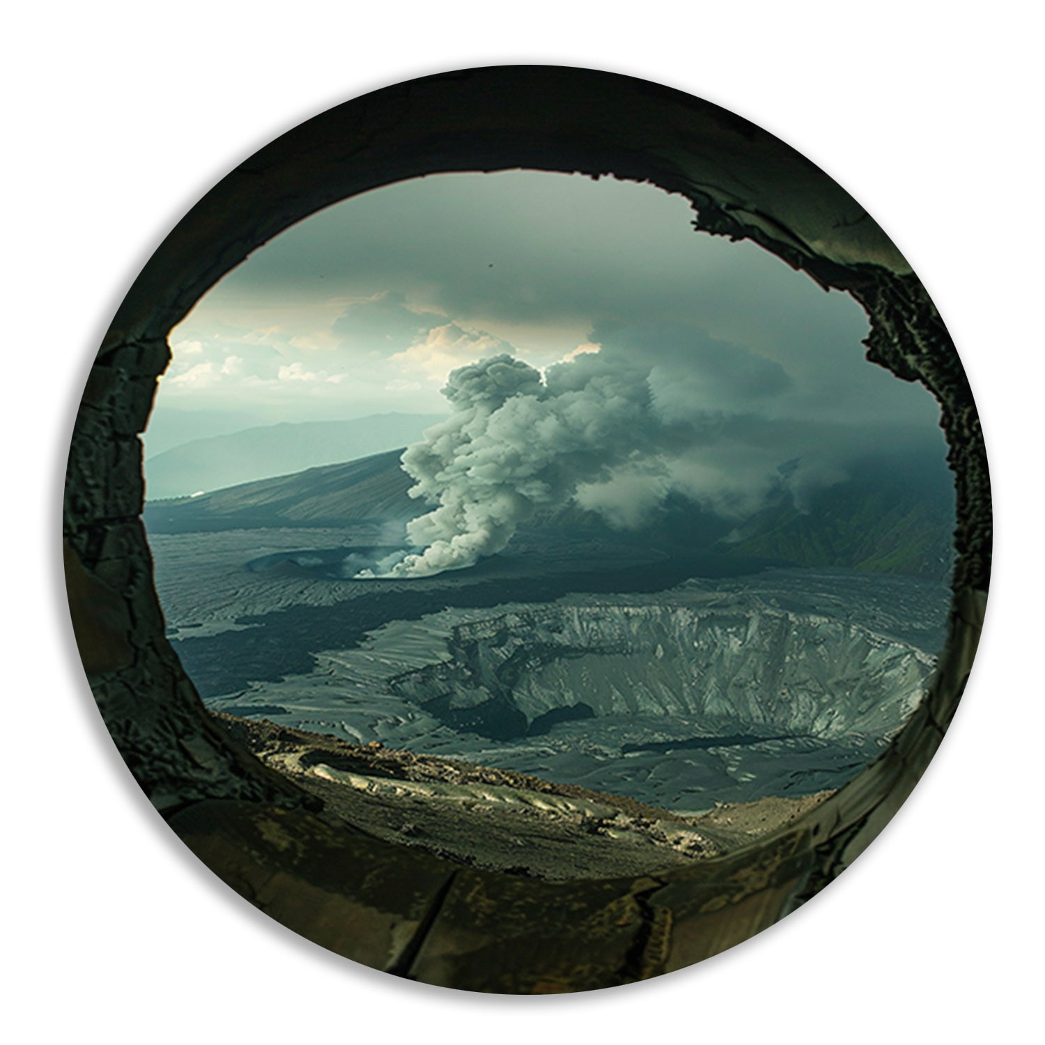 Vulkaanuitbarsting in een Berglandschap aluminium muurcirkel