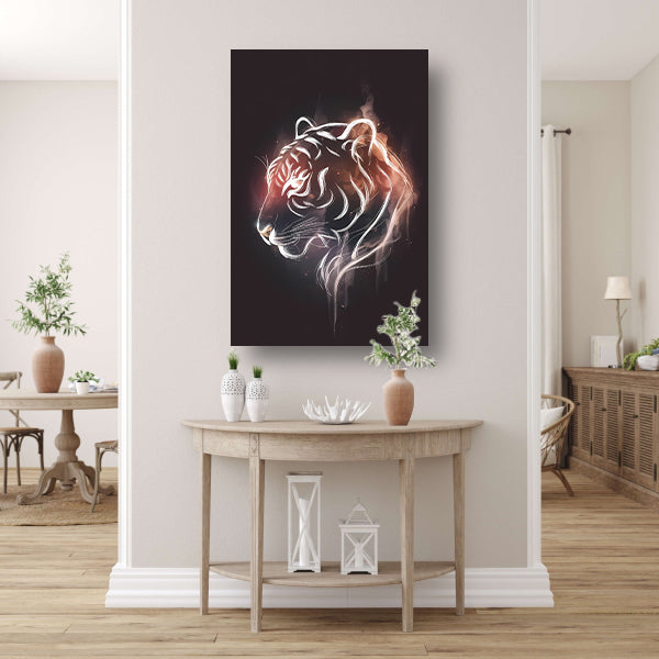 Vurige Tijger in Lijnkunst Illustratie canvas met baklijst