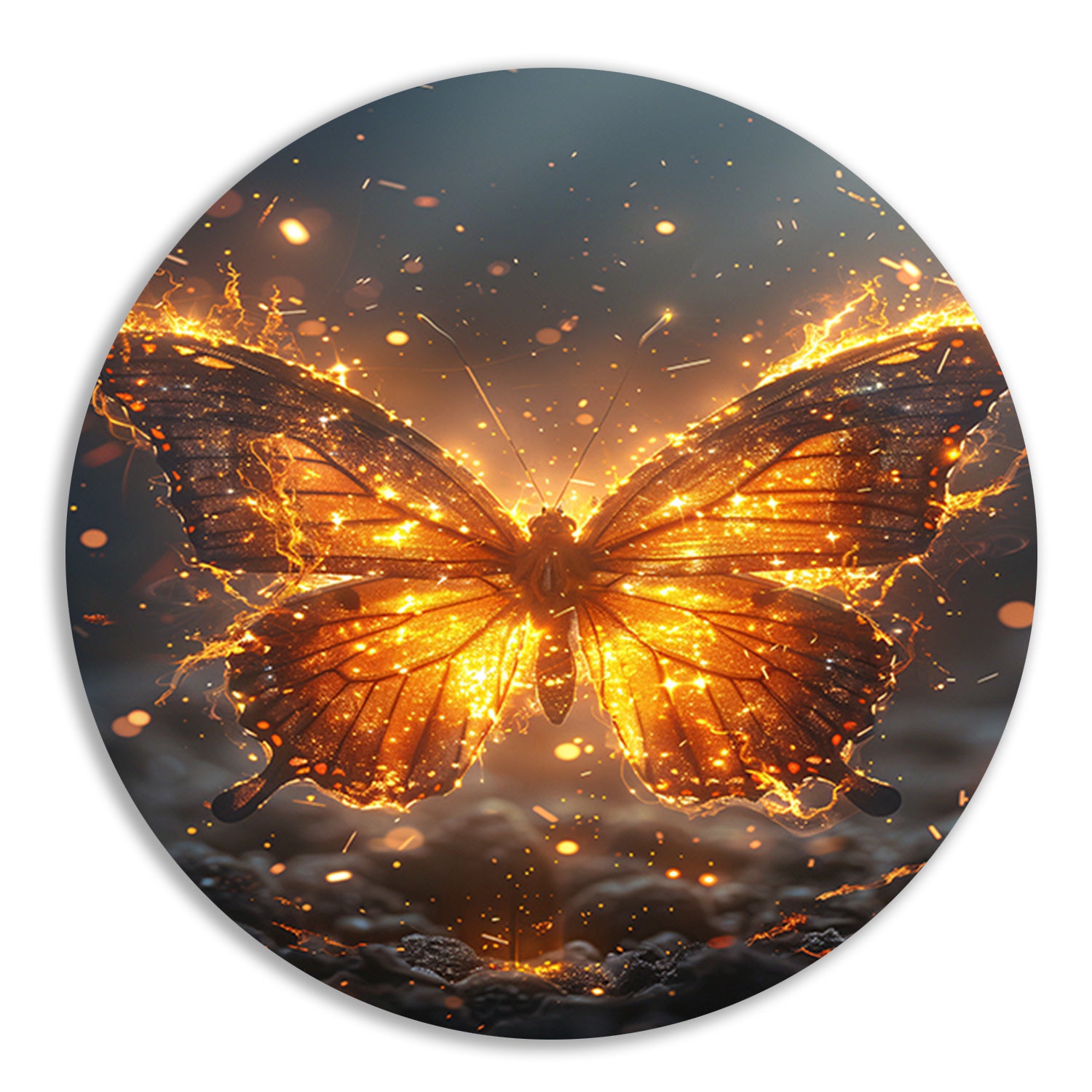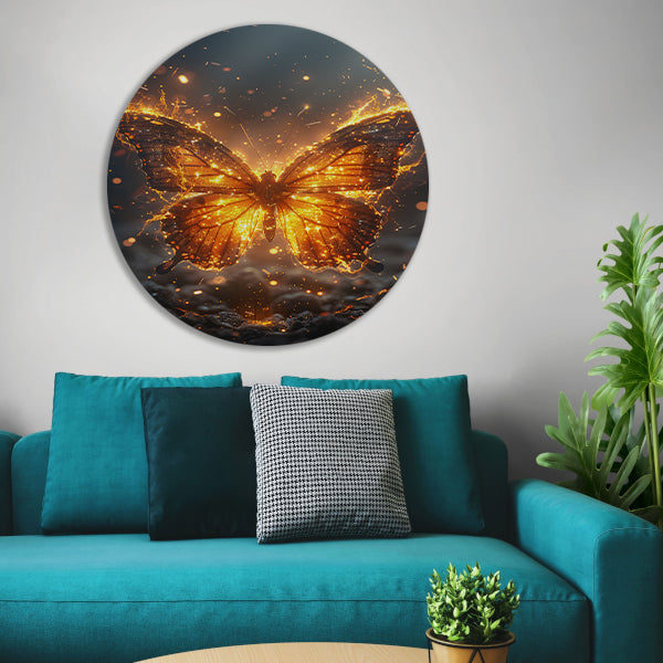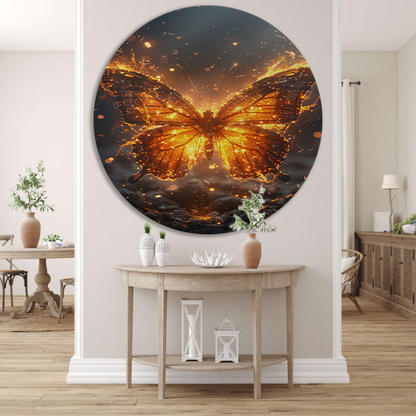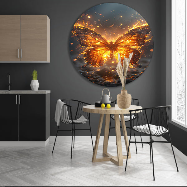 Breng een vleugje magie in huis met de "Vurige Vlinder Dansend in de Nacht" forex muurcirkel en geniet van de schoonheid en elegantie die het met zich meebrengt.