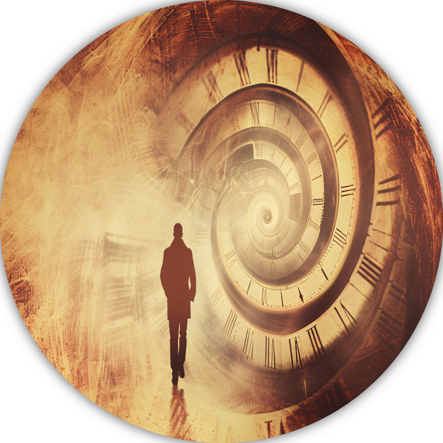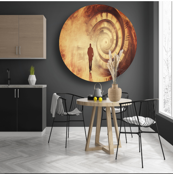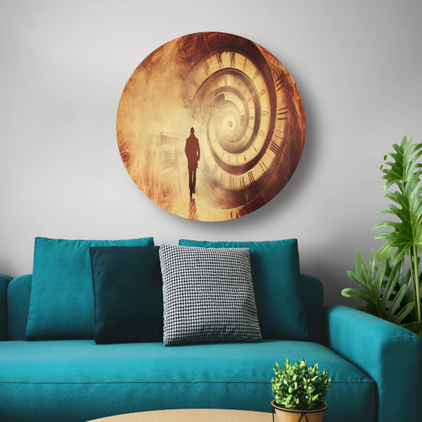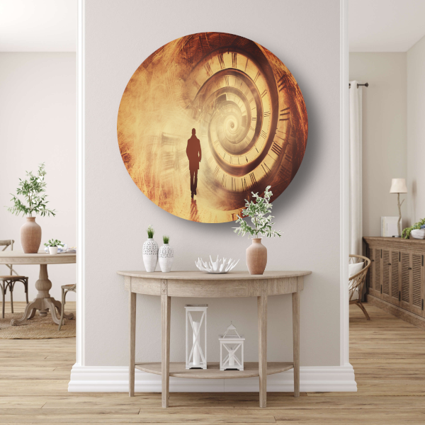 Wandelaar in een Tijdsoneindige Spiraal aluminium muurcirkel