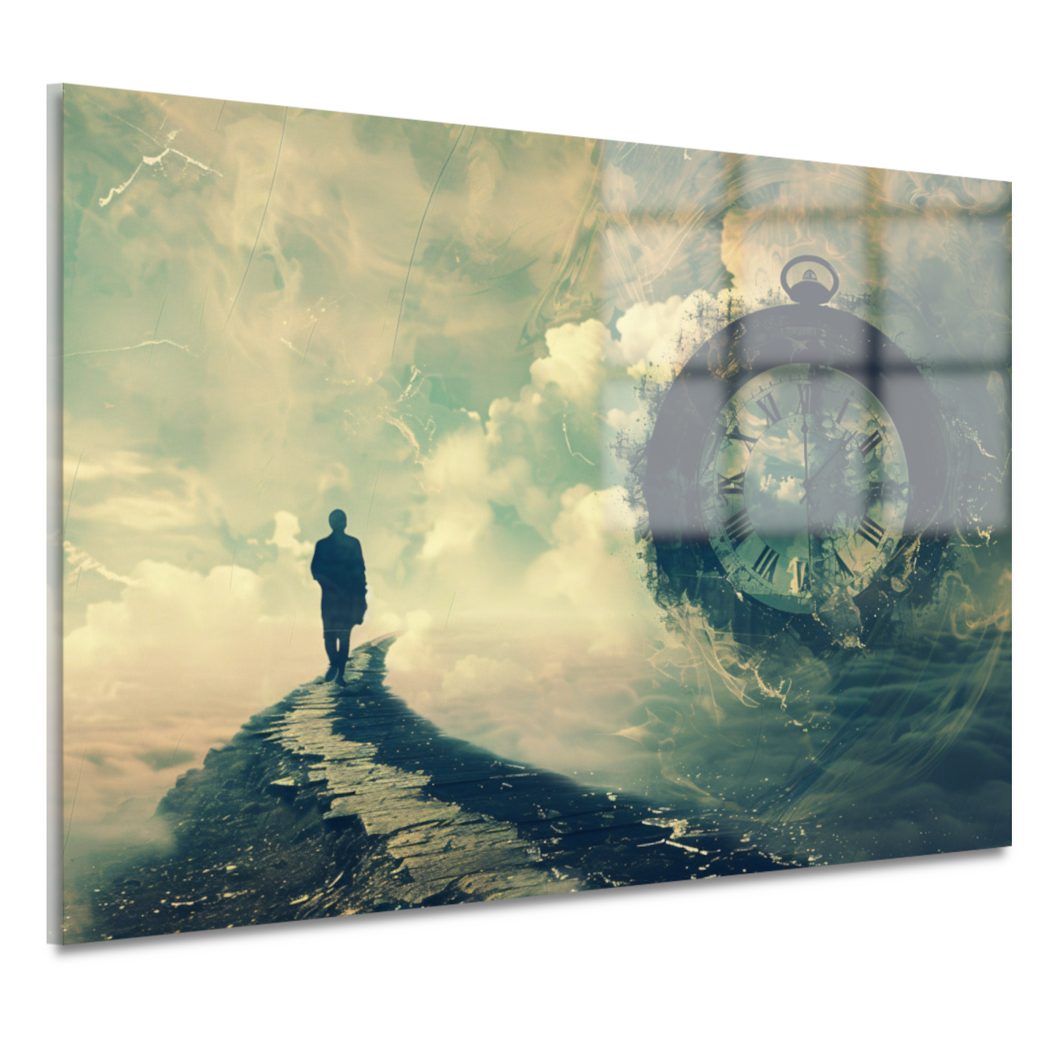 Wandelaar op een surrealistische tijdbrug acrylglas