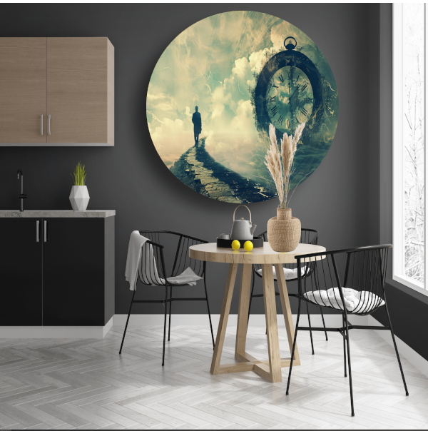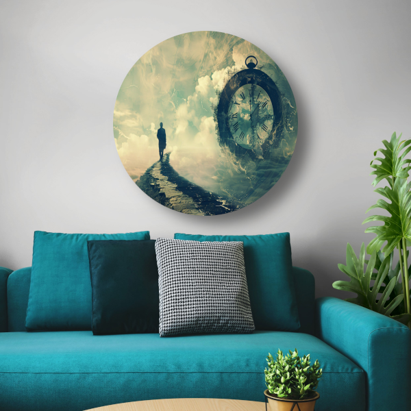 Wandelaar op een surrealistische tijdbrug forex muurcirkel