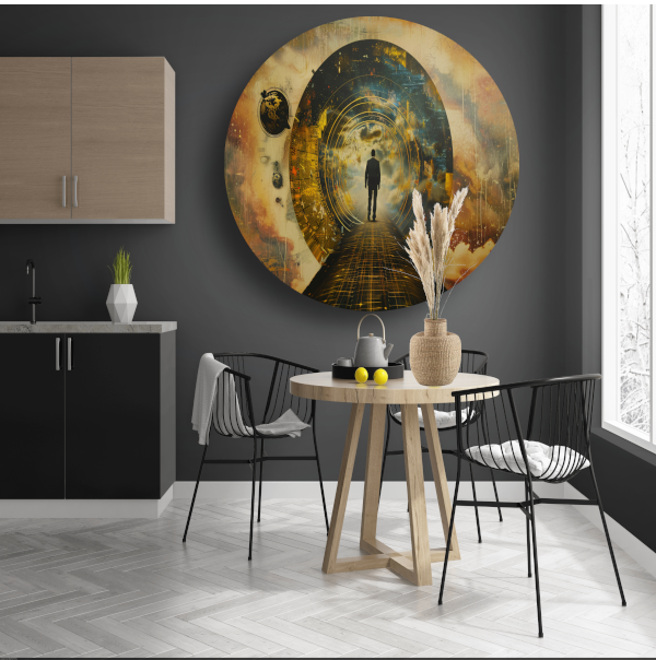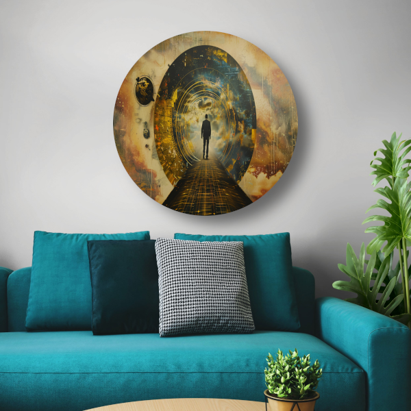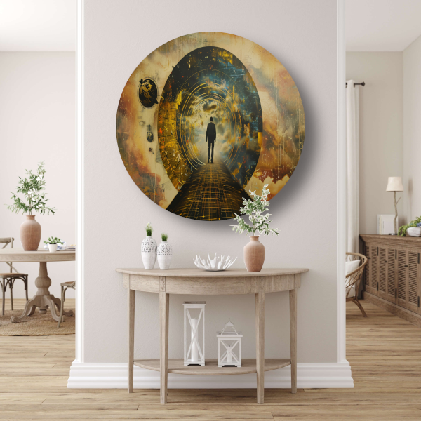 Of je nu een liefhebber bent van kunst, science fiction of gewoon op zoek bent naar een uniek decoratie stuk, deze muurcirkel zal zeker de aandacht trekken en een bijzondere touch geven aan jouw interieur. Bestel hem vandaag nog en laat je verrassen door de schoonheid van de "Wandelaar tussen tijd en kosmische poorten".