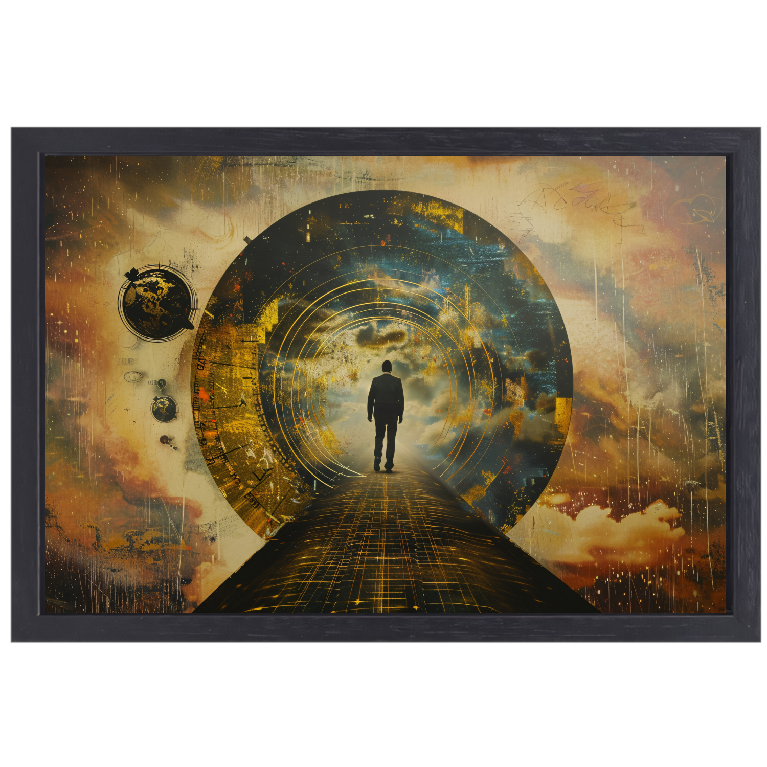 Wandelaar tussen tijd en kosmische poorten canvas met baklijst