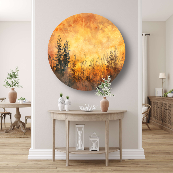 Breng de warme sfeer van een rustige zonsondergang in de natuur in huis met deze prachtige muurcirkel. Een echte blikvanger die zorgt voor een unieke uitstraling in elke ruimte.