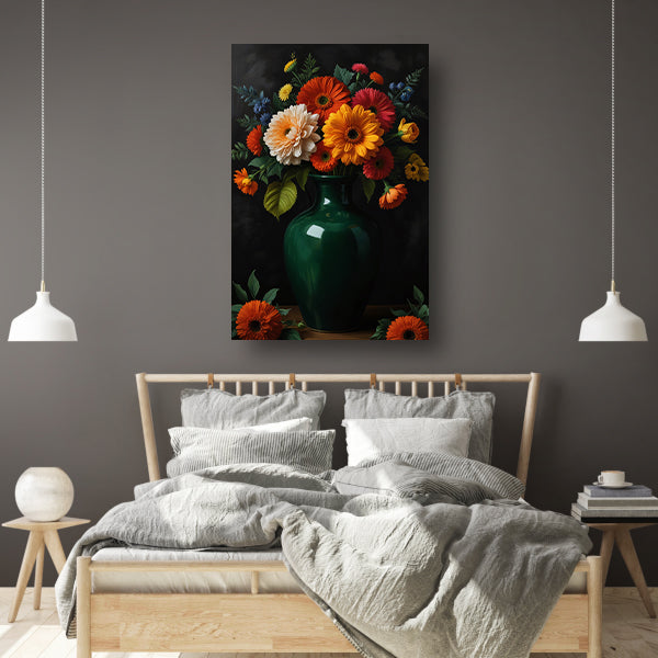 Weelderig Bloemenboeket in Groene Vaas poster