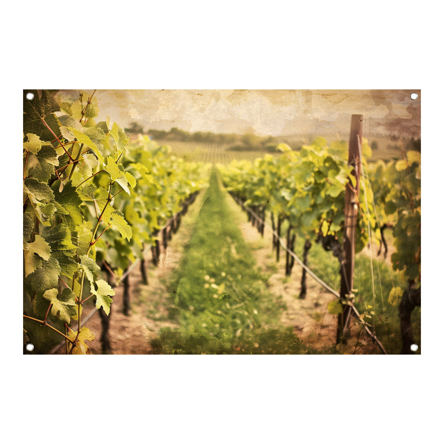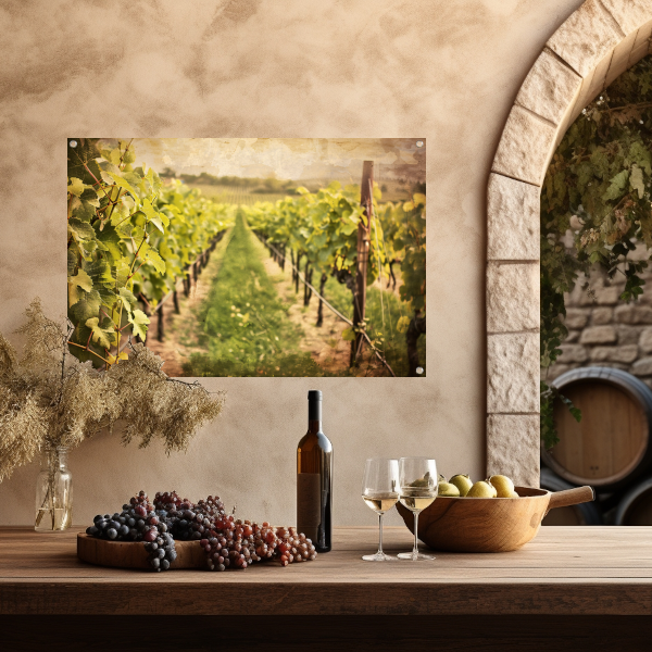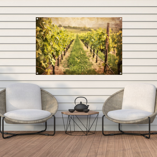 Wijngaard in sepia - Stille getuige van tijd tuinposter