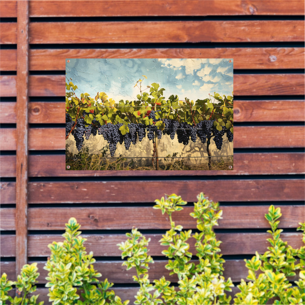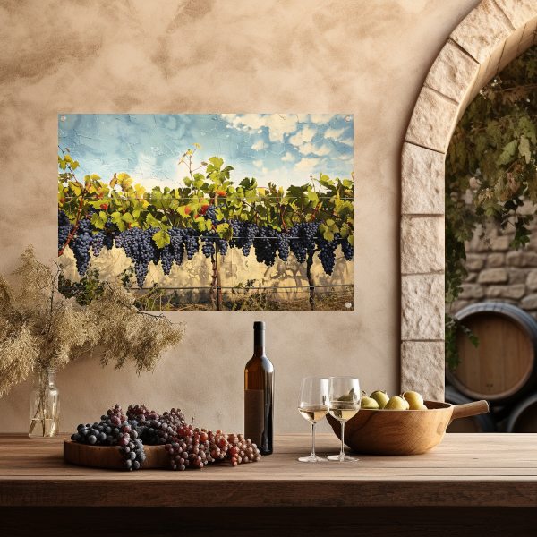 Wijngaard onder een helderblauwe lucht tuinposter