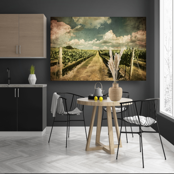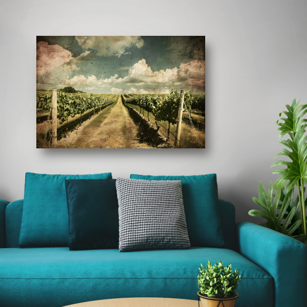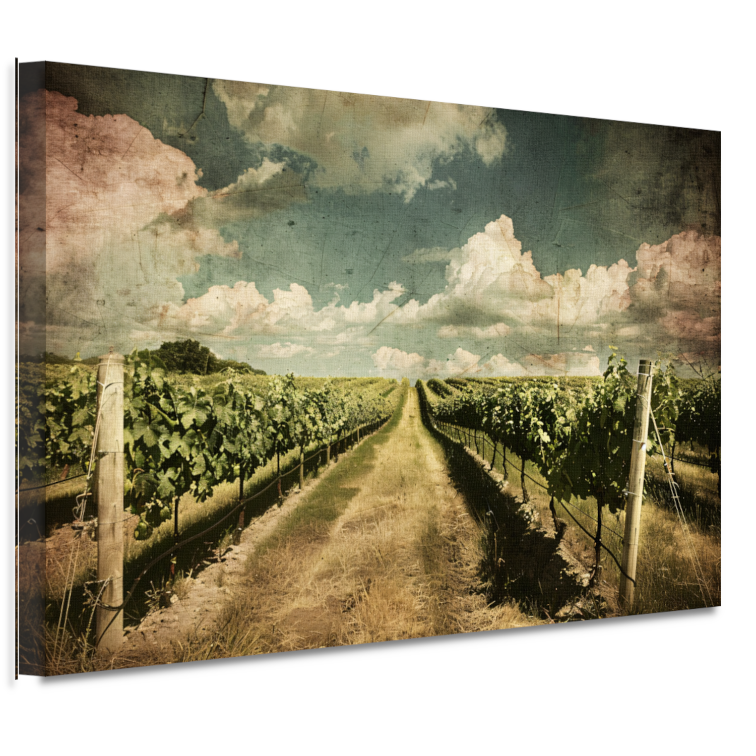 Wijngaardpad onder een dynamische wolkenhemel canvas