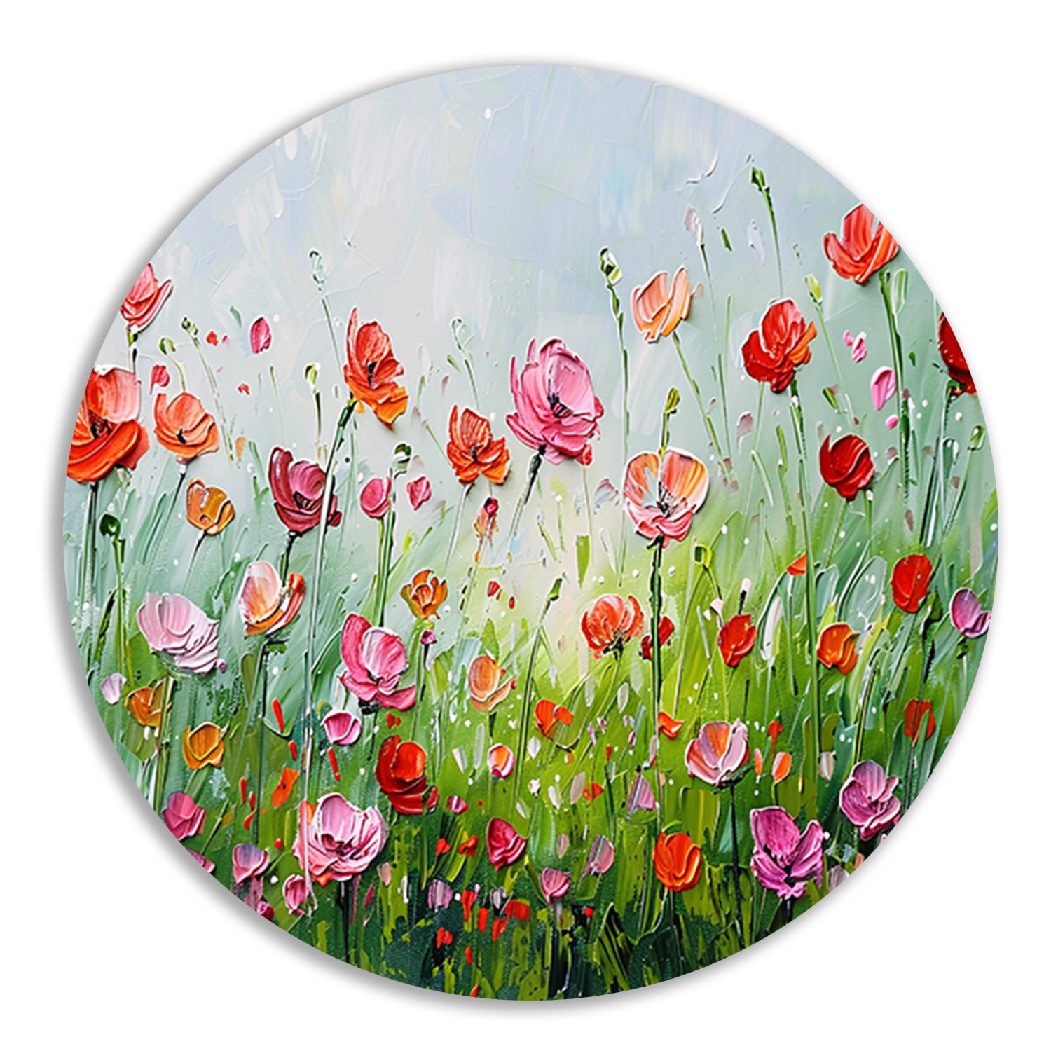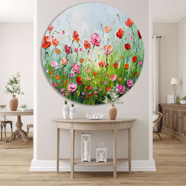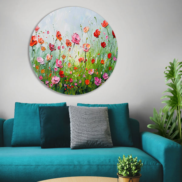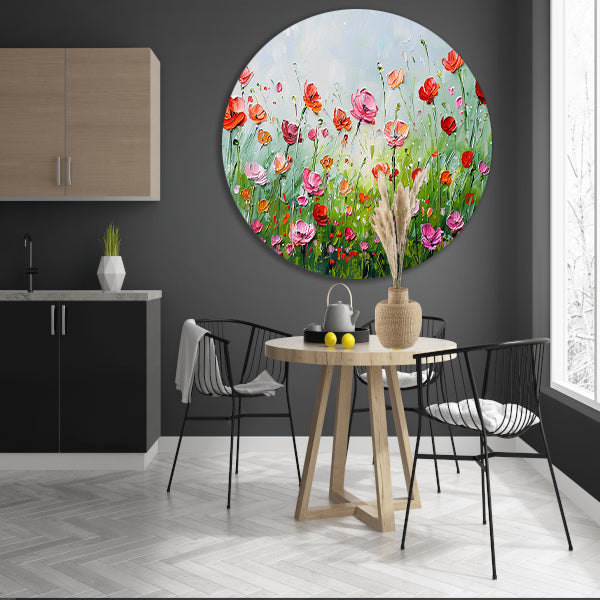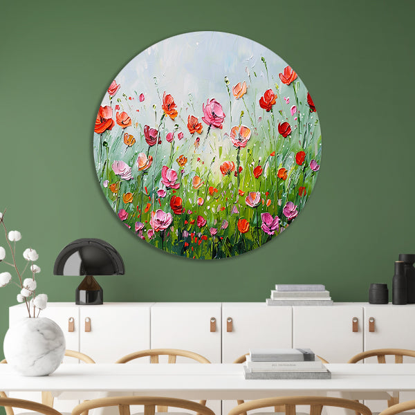 Wilde bloemen in zomerse weide schilderij aluminium muurcirkel