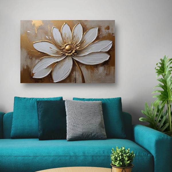 Witte Bloem met Gouden Accenten canvas met baklijst