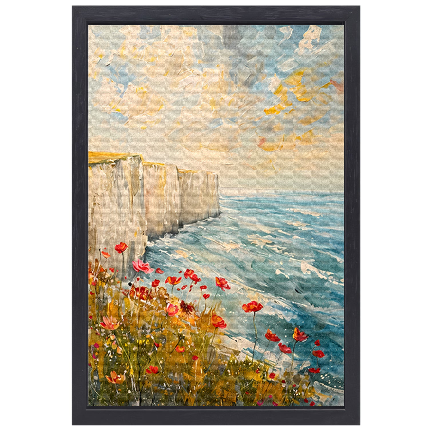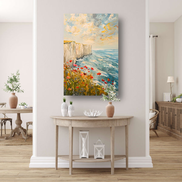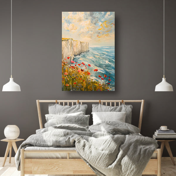 Witte kliffen en bloemen aan zee canvas met baklijst