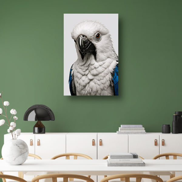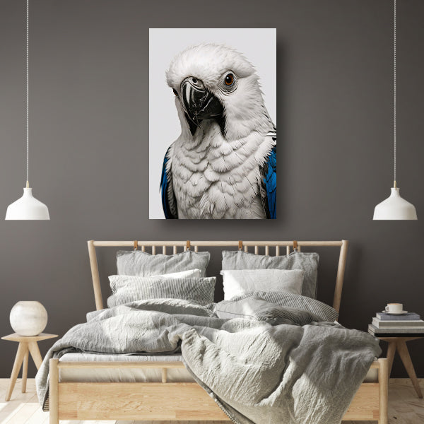 Witte Vogel met Blauwe Accenten Illustratie acrylglas