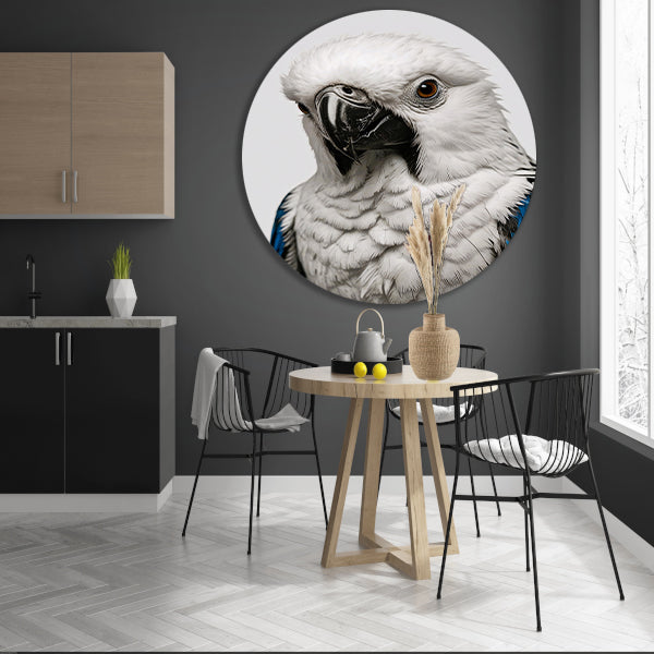 Witte Vogel met Blauwe Accenten Illustratie aluminium muurcirkel