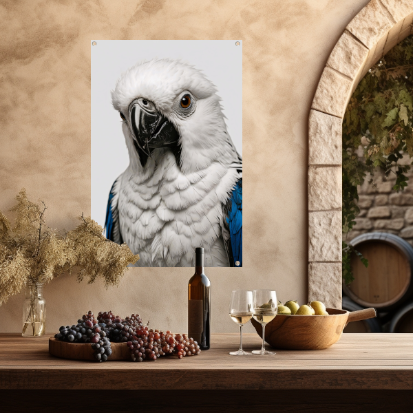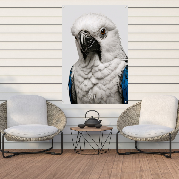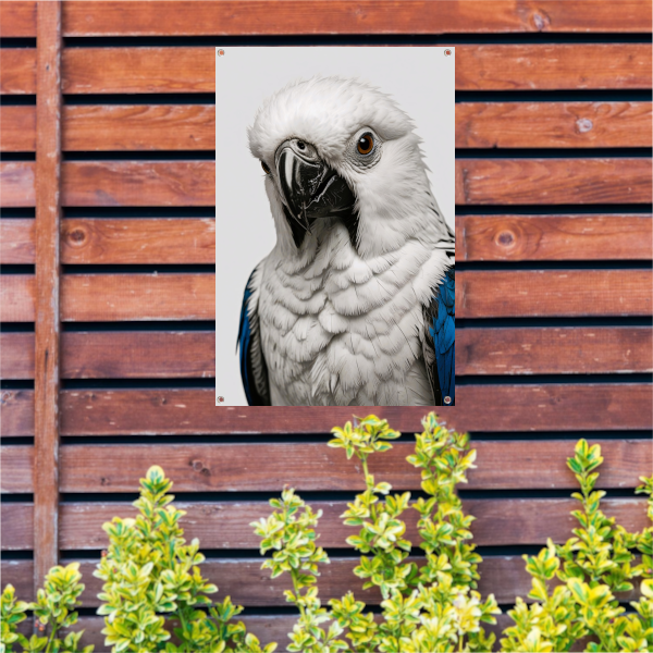 Witte Vogel met Blauwe Accenten Illustratie tuinposter