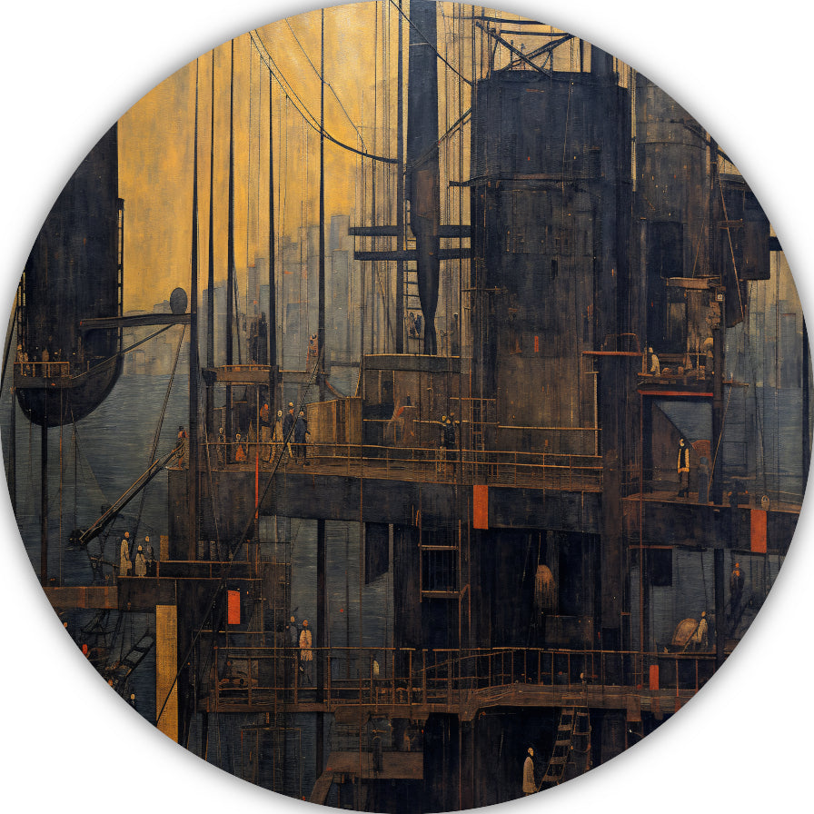 Wolkenkrabber in lijnenspel aluminium muurcirkel