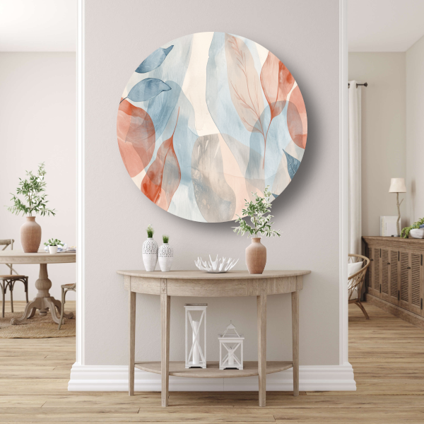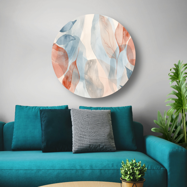 Zachte Abstracte Waterverf met Bladeren aluminium muurcirkel