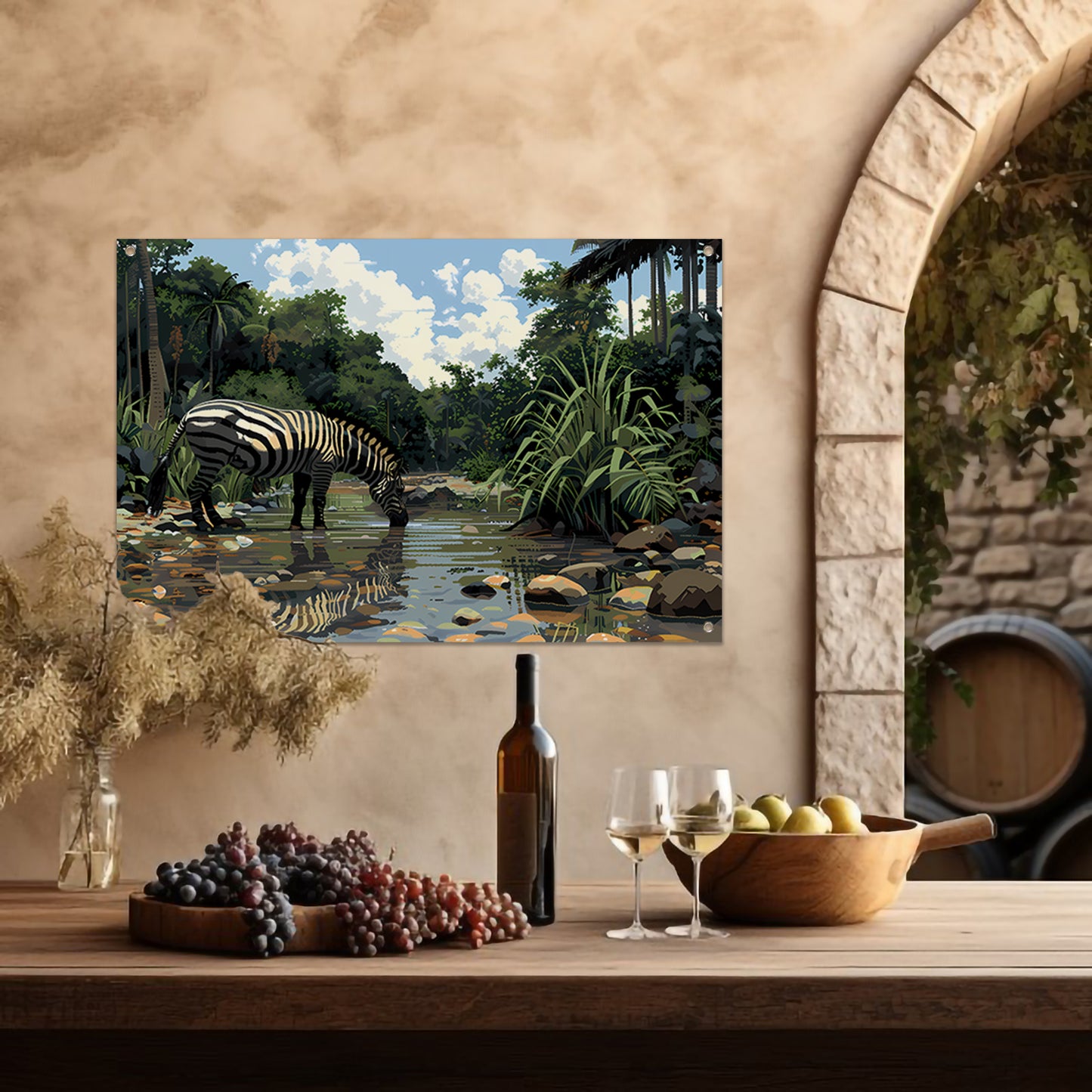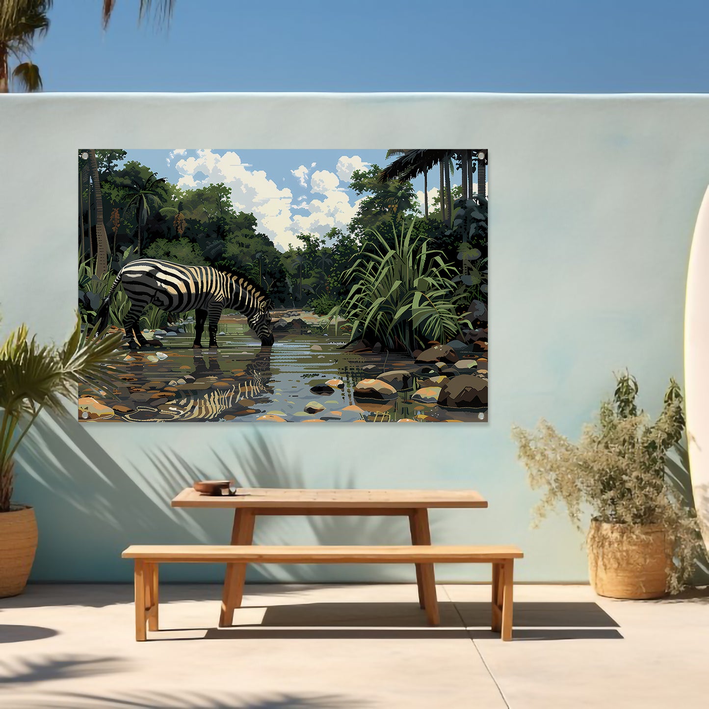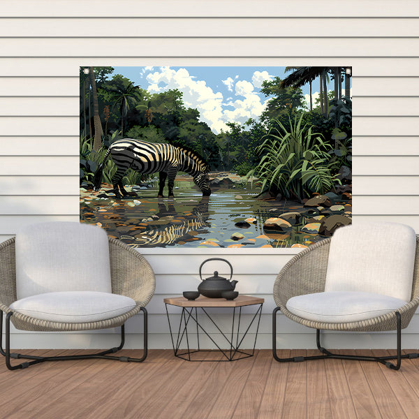 Zebra aan waterpoel in jungle tuinposter