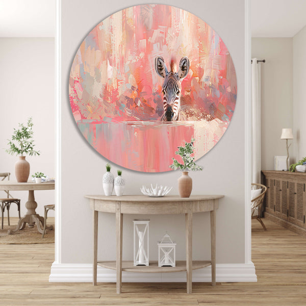 Zebra in kleurrijke abstracte kunstomgeving aluminium muurcirkel