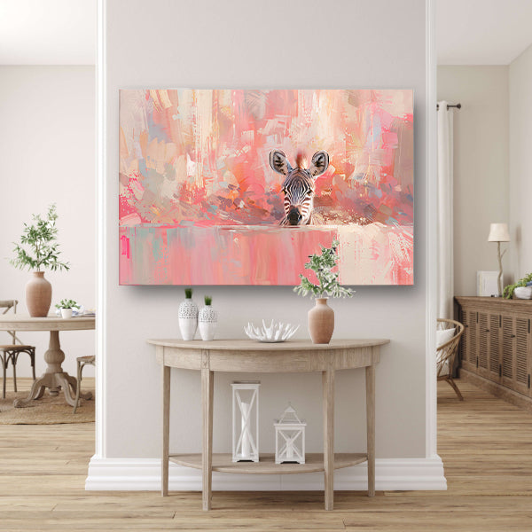 Zebra in kleurrijke abstracte kunstomgeving canvas met baklijst