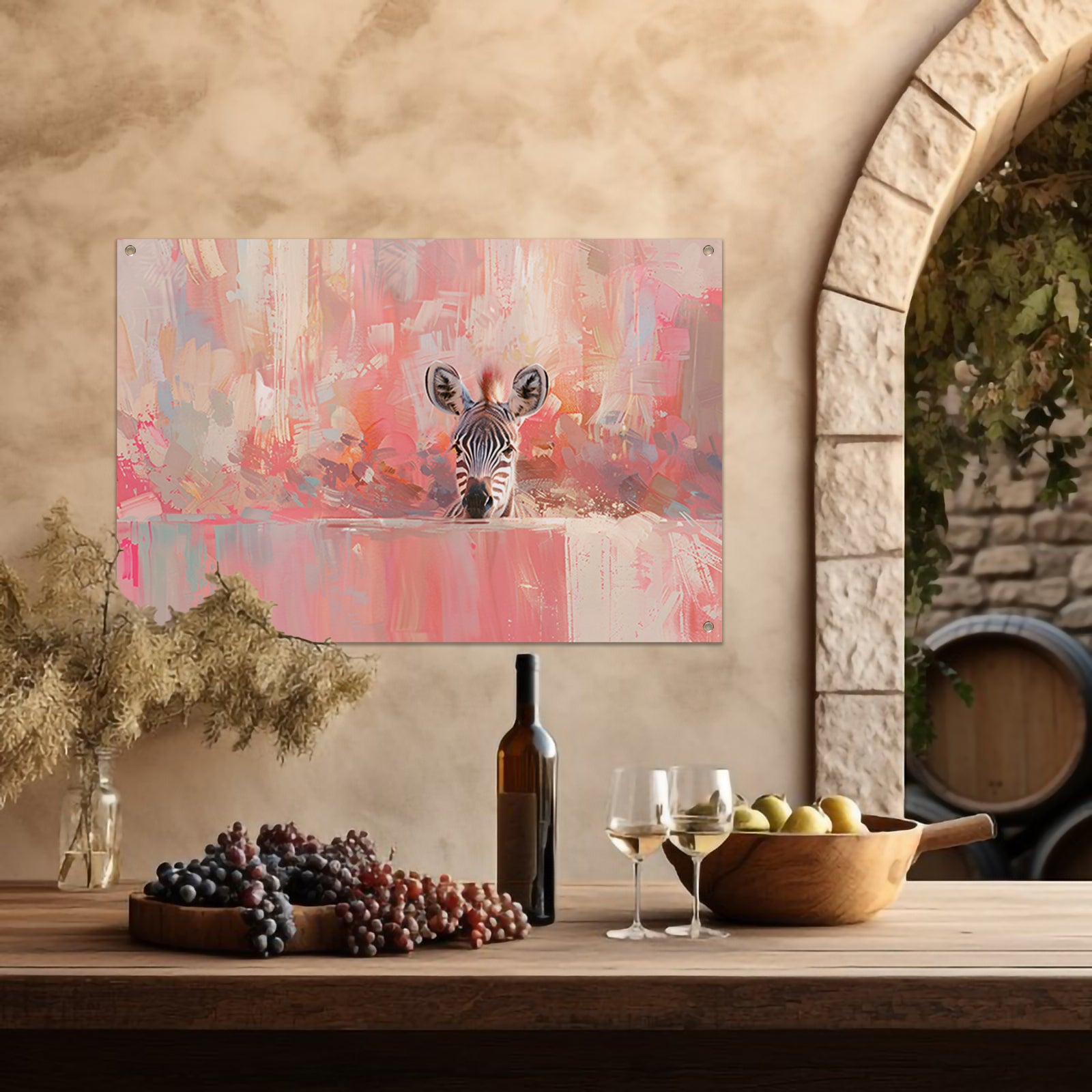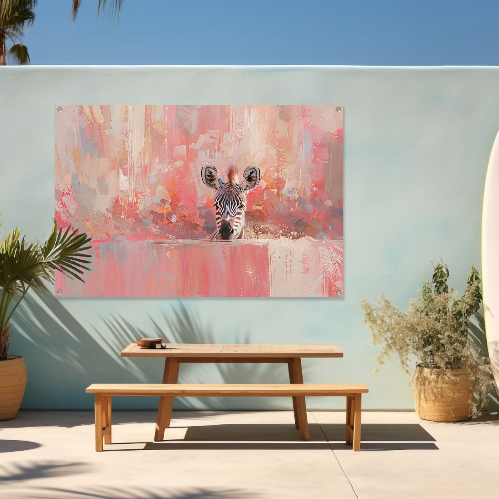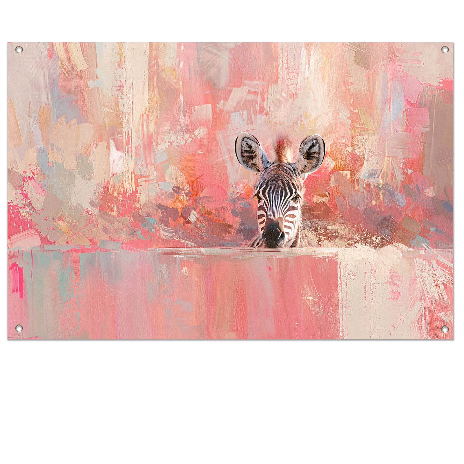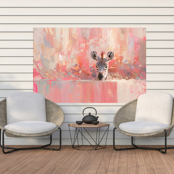 Zebra in kleurrijke abstracte kunstomgeving tuinposter