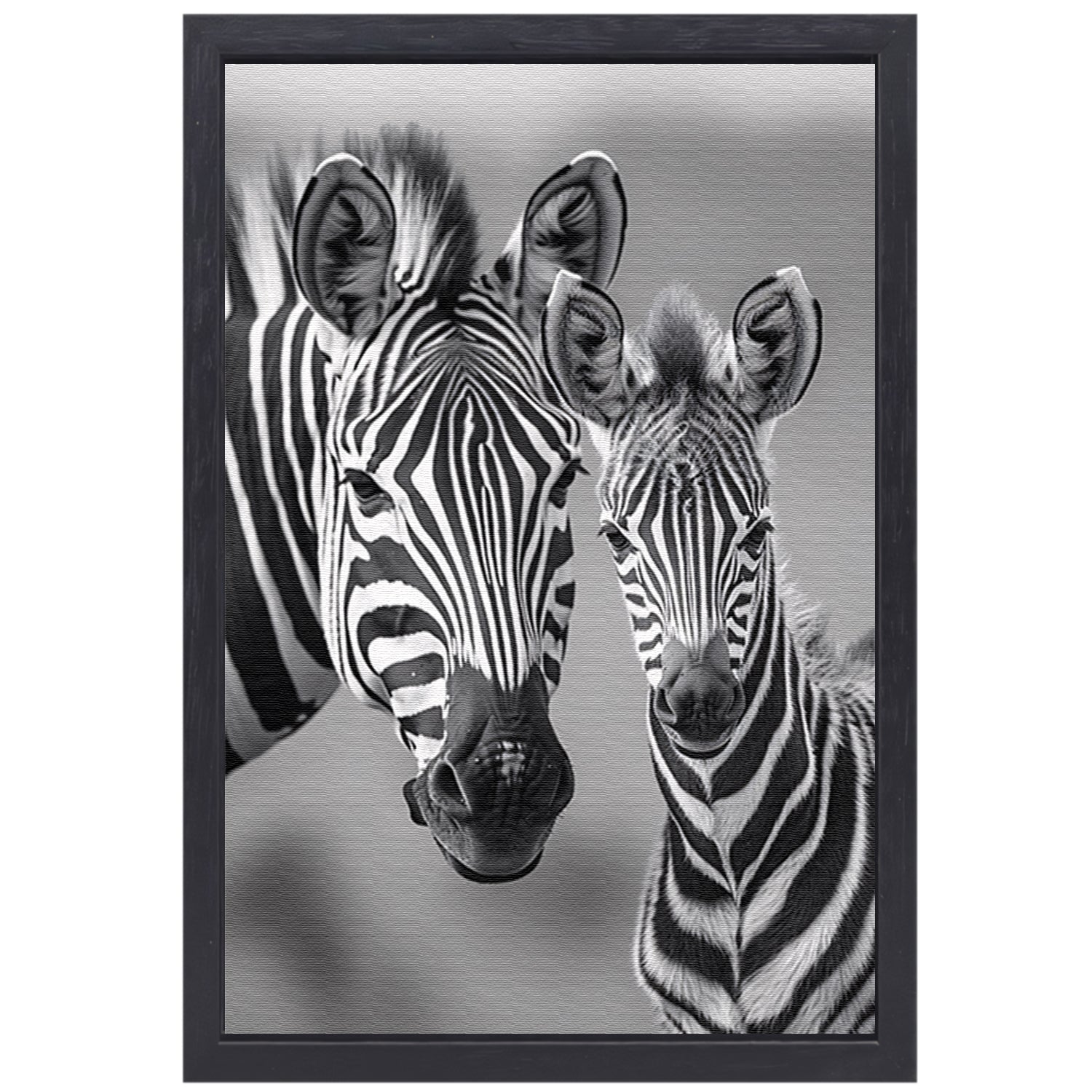 Zebra moeder en veulen in zwart-wit canvas met baklijst