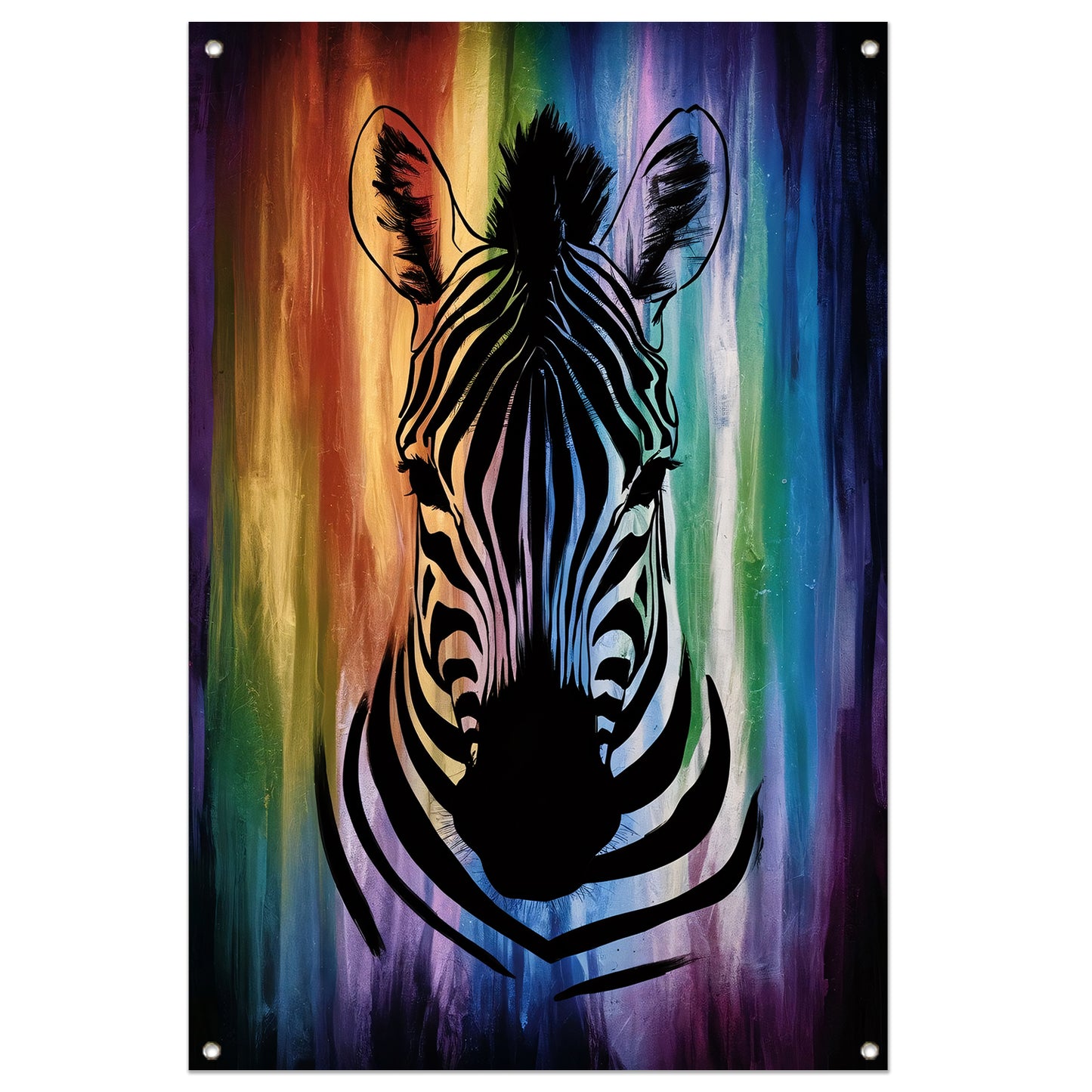Zebra silhouet met kleurrijke regenboog achtergrond tuinposter