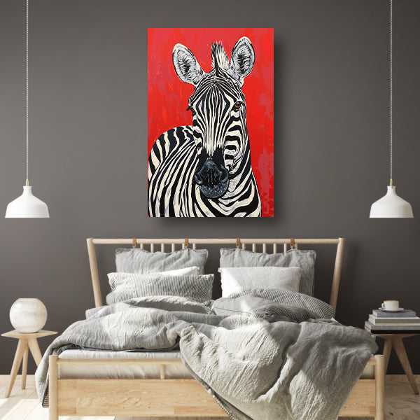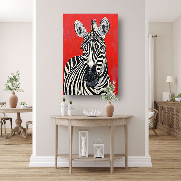 Zebra tegen een levendige rode achtergrond canvas met baklijst