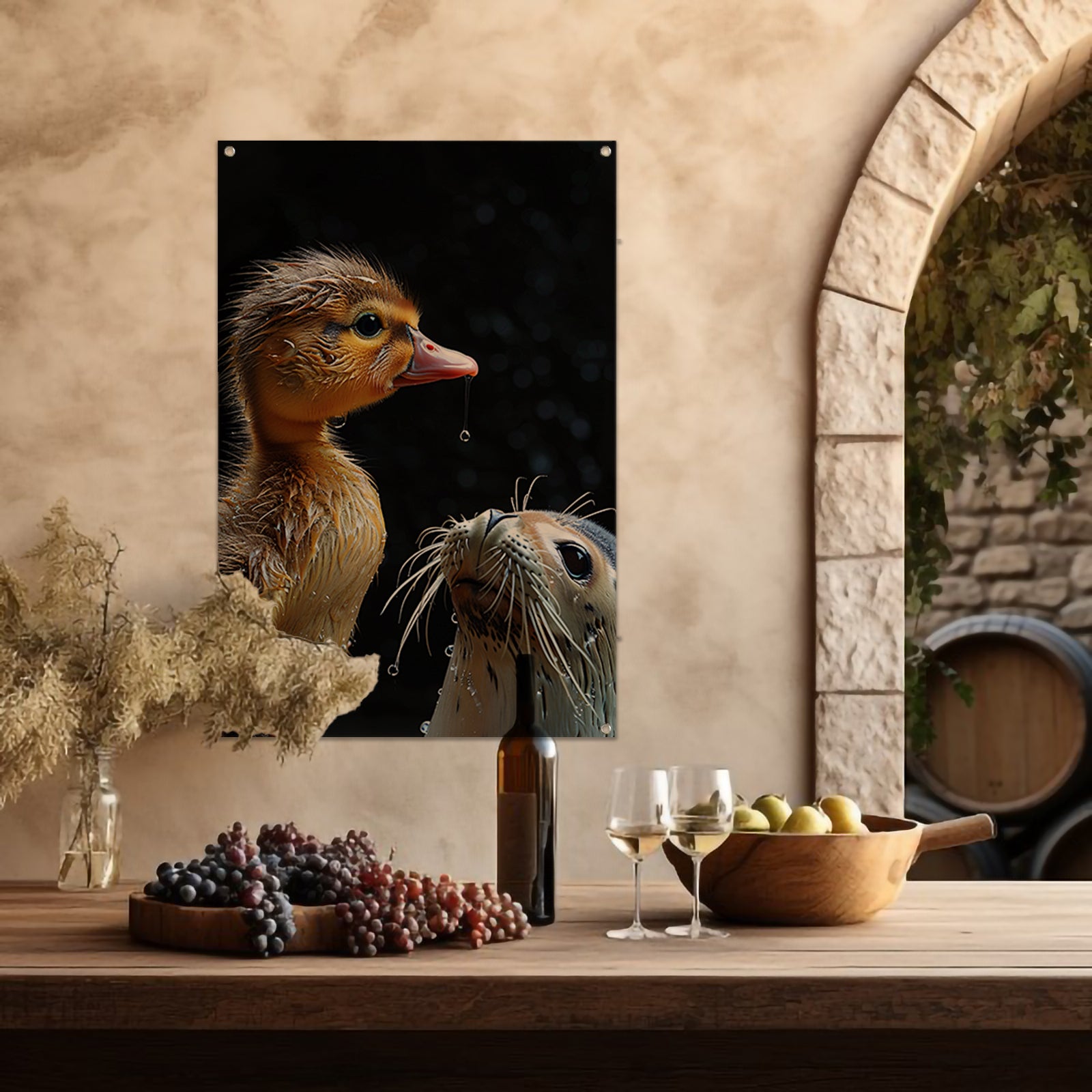 Onze tuinposters zijn UV- en waterbestendig, waardoor ze bestand zijn tegen zon en regen en hun kleuren langdurig mooi blijven. Alle tuinposters van De Muurdecoratie zijn voorzien van ringen in de hoeken, zodat je ze eenvoudig kunt ophangen. Let op: onze tuinposters worden niet met ophangsysteem geleverd.