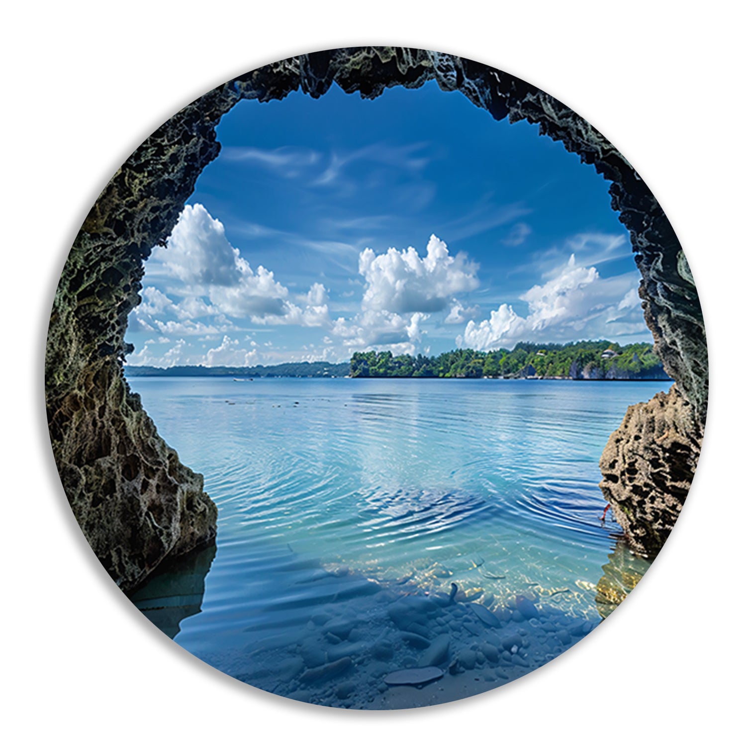 Zeezicht vanuit een grot met turquoise water forex muurcirkel