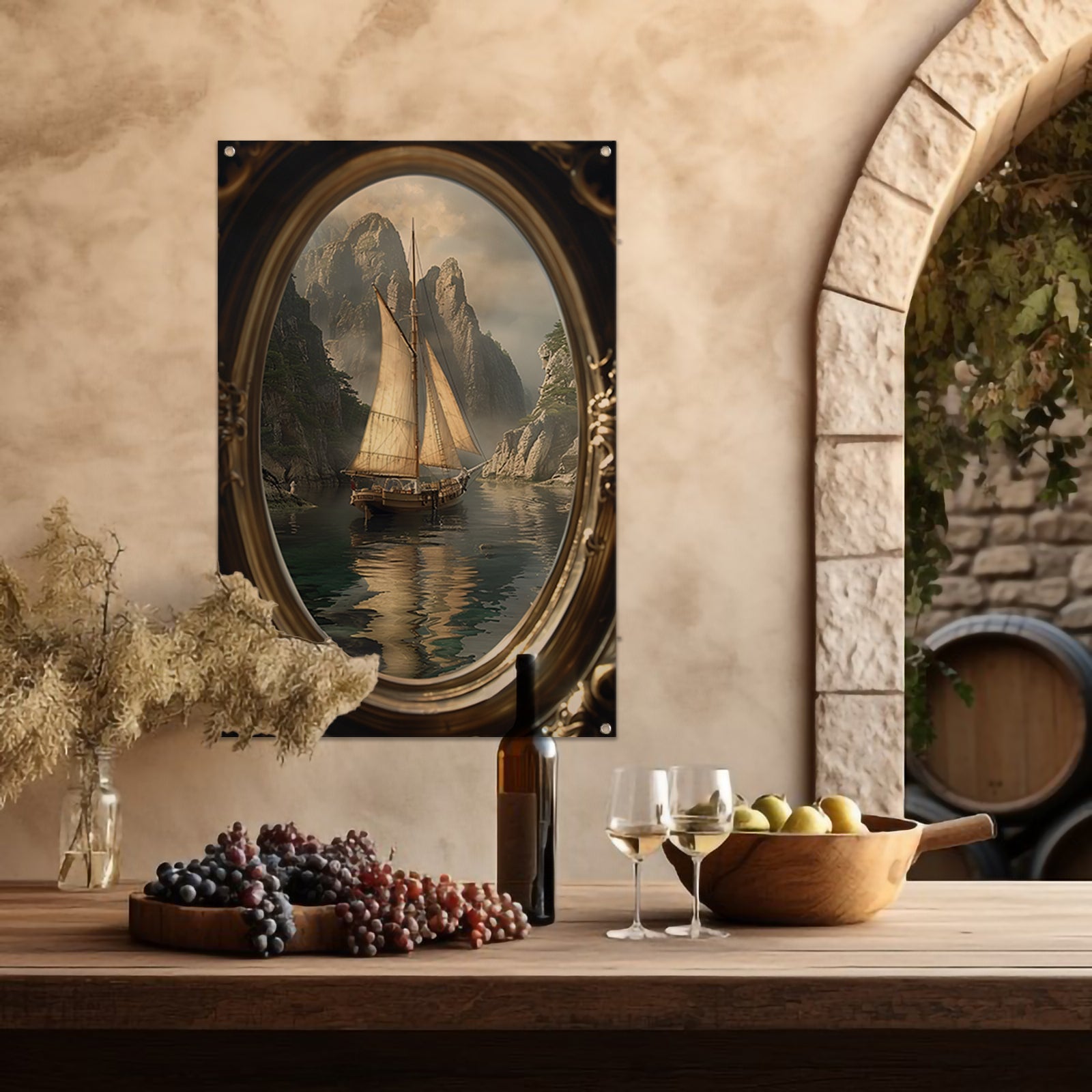 Zeilschip in Spiegelbeeld van de Tijd tuinposter