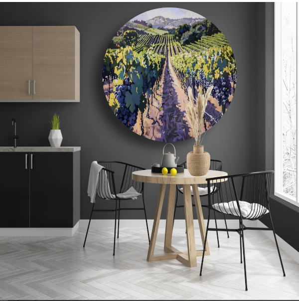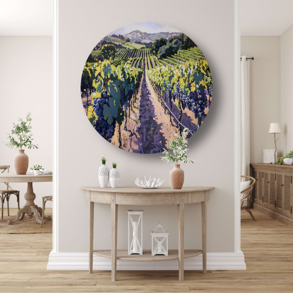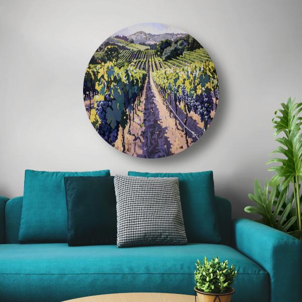 Zomerse wijngaard in volle bloei aluminium muurcirkel