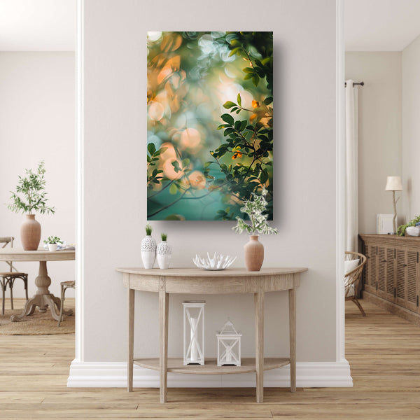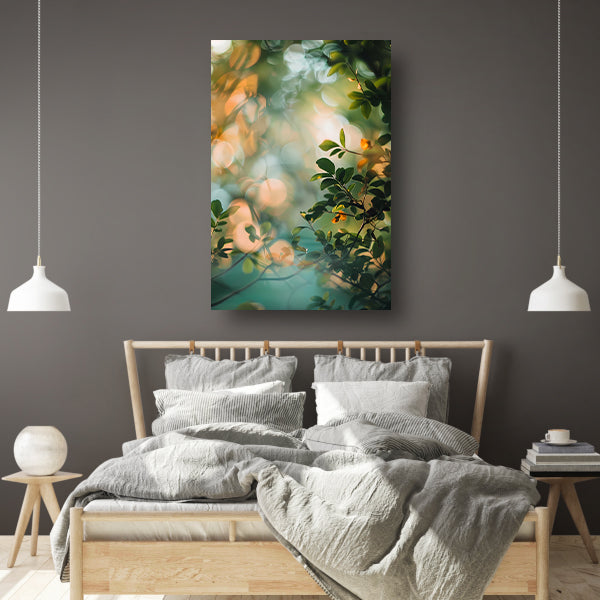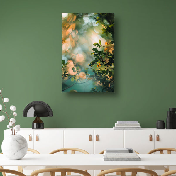 Zonlicht door groene bladeren canvas