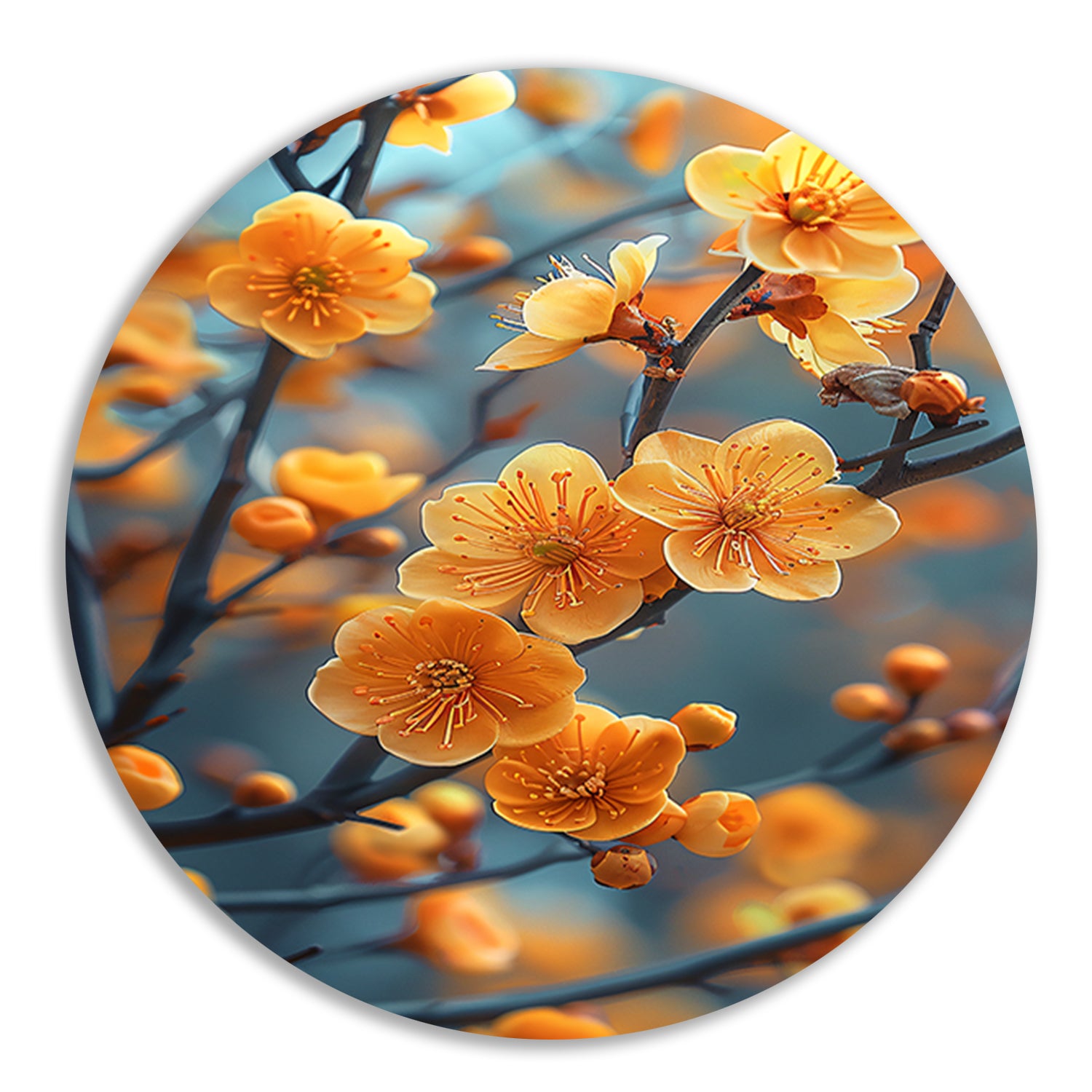 Met zijn levendige kleuren en gedetailleerde afbeelding brengt deze muurcirkel direct sfeer in elke ruimte. Of je nu een liefhebber bent van bloemen of gewoon op zoek bent naar een uniek en stijlvol decoratiestuk, deze zonnebloemen op een tak muurcirkel zal zeker een blikvanger zijn in jouw huis.
