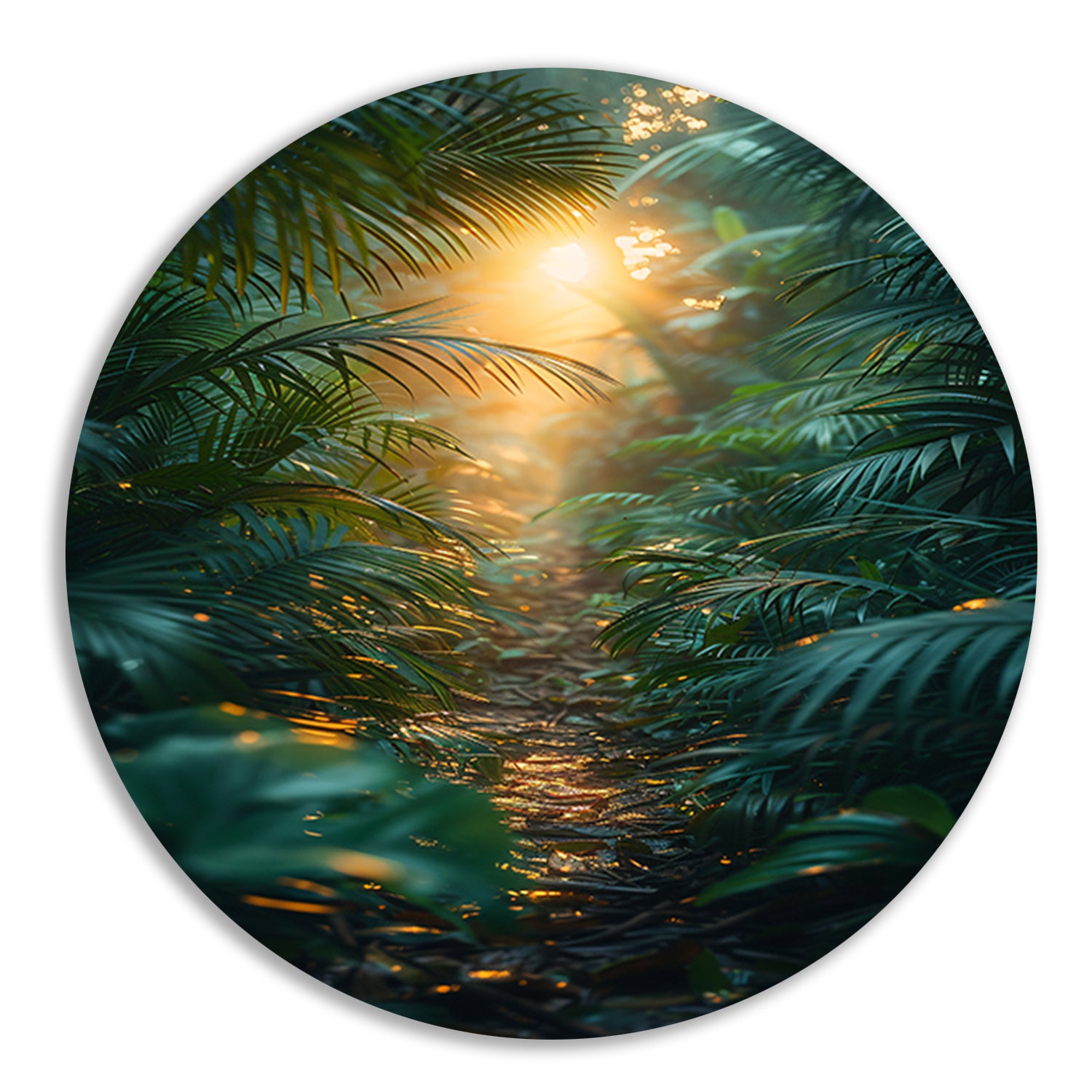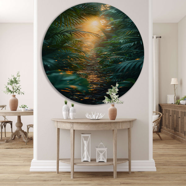 Zonnig pad door weelderig regenwoud forex muurcirkel