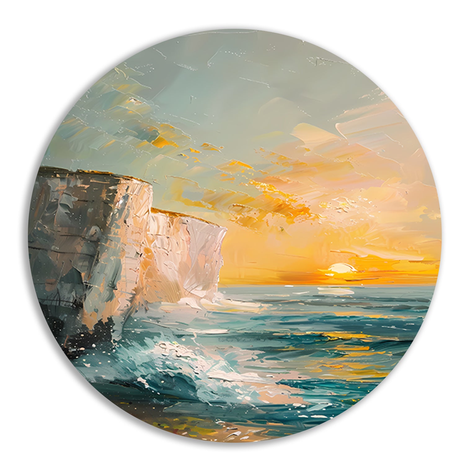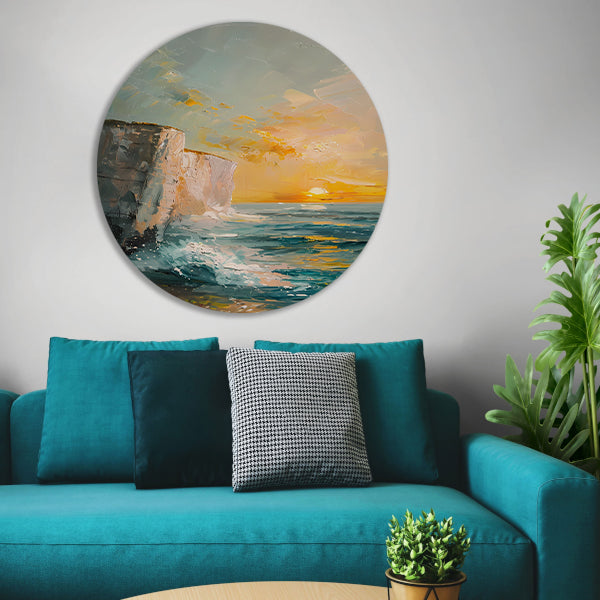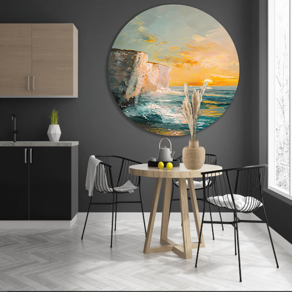 Zonsondergang bij de witte kliffen van Dover aluminium muurcirkel