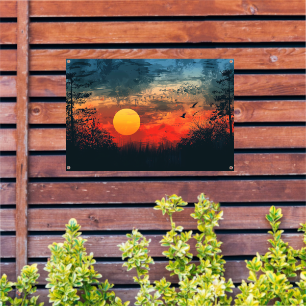 Onze tuinposters zijn UV- en waterbestendig, waardoor ze bestand zijn tegen zon en regen en hun kleuren langdurig mooi blijven. Alle tuinposters van De Muurdecoratie zijn voorzien van ringen in de hoeken, zodat je ze eenvoudig kunt ophangen. Let op: onze tuinposters worden niet met ophangsysteem geleverd.