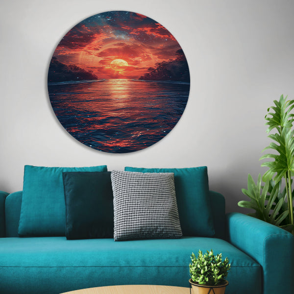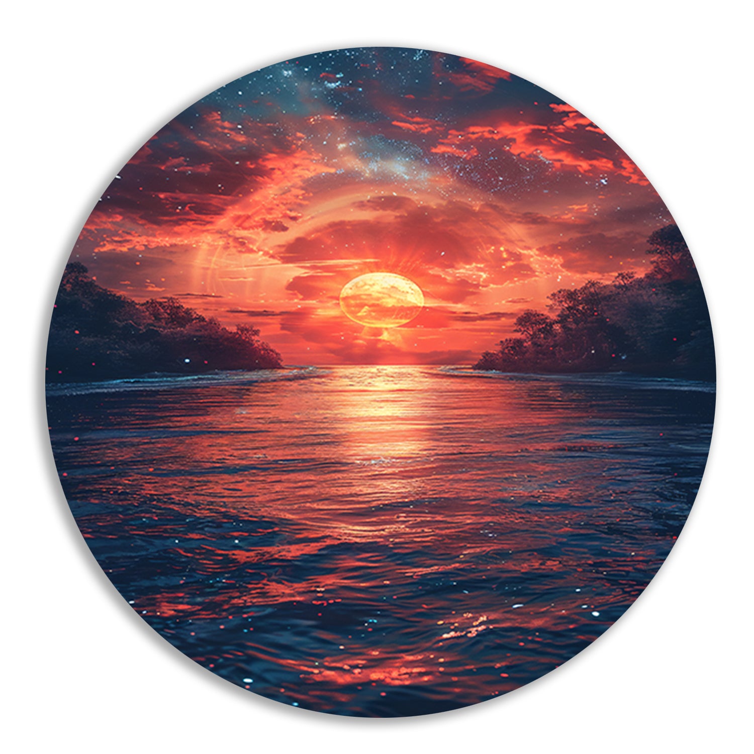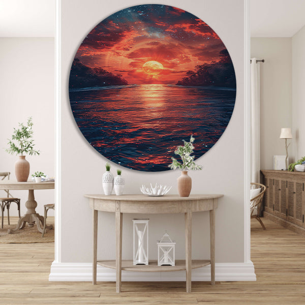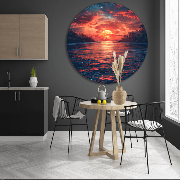 De muurcirkel is verkrijgbaar in diverse maten, waardoor er altijd wel een formaat is dat perfect in jouw interieur past. Of je nu een klein hoekje wilt opvrolijken of een echte eyecatcher wilt creëren, met deze muurcirkel haal je een stukje natuurlijke schoonheid in huis. Geniet elke dag van de rustgevende aanblik van de zon die langzaam ondergaat boven de golven. Voeg dit prachtige kunstwerk toe aan je collectie en geniet van de pure schoonheid van de natuur.