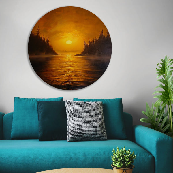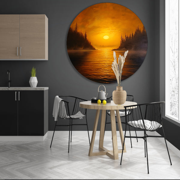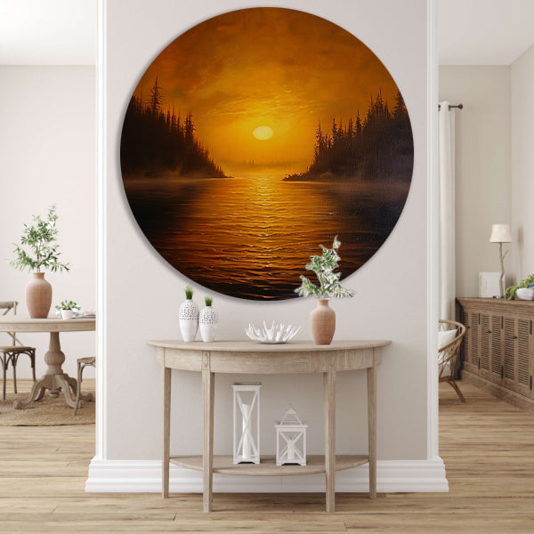 Zonsondergang boven kalm meer met bomen forex muurcirkel