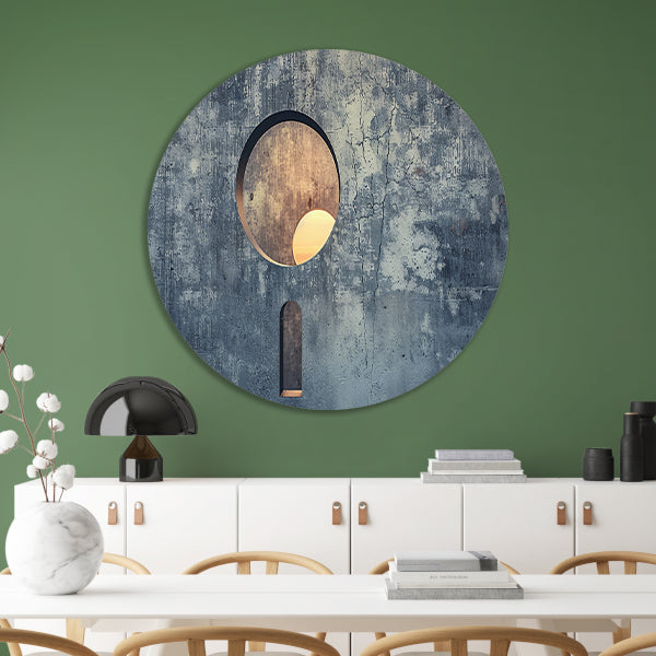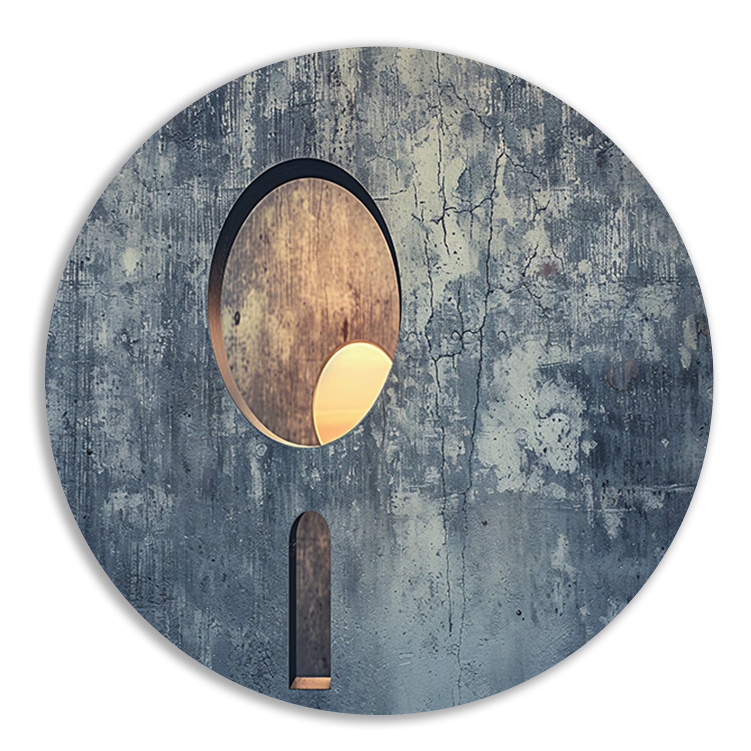 Zonsondergang gezien door een sleutelgat aluminium muurcirkel