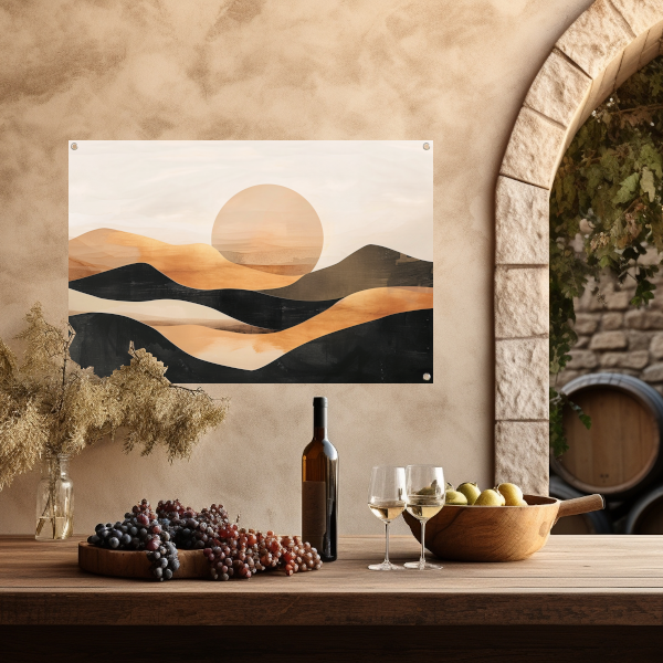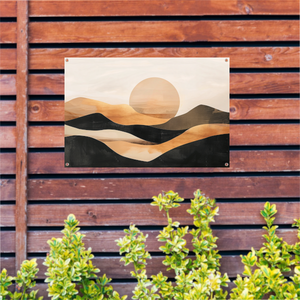 Zonsondergang Heuvels Abstract Monochroom tuinposter