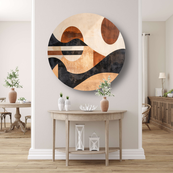 De muurcirkel wordt geleverd met een gratis ophangplaat, zodat je hem gemakkelijk aan de wand kunt bevestigen. Daarnaast is deze zonsondergang in abstracte geolandscapes aluminium muurcirkel verkrijgbaar in meerdere formaten, zodat je zelf kunt kiezen welke het beste past bij jouw interieur.